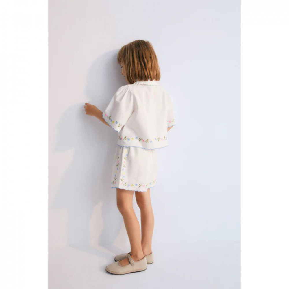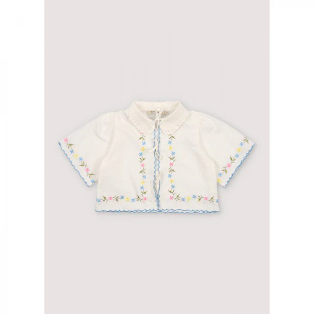 Блуза Hermione — це вічний бестселер, виготовлений із 100% білої бавовняної тканини, що забезпечує елегантність і комфорт. Блуза має ніжну квіткову вишивку, натхненну вінтажною тканинною серветкою, яку дизайнер знайшов у Rastro в Мадриді. Його розроблено з класичним сорочковим коміром, центральним отвором із бантовими деталями та тонкими акцентами вишивки синього кольору для вишуканої обробки. Ідеальна як для повсякденних, так і для особливих випадків, блуза Hermione легко поєднує в собі історію, майстерність і стиль.