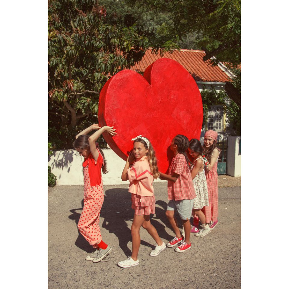 Сорочка-піджак з короткими рукавами. З рожевим геометричним принтом. Дерев'яні ґудзики. Прати в теплій воді (макс. 40ºC). Не відбілювати. Сушити при нормальній температурі, низькій. Прасувати при середній температурі (макс. 150°C). Хімчистка будь-яким розчинником, крім трихлоретилену. Прати навиворіт.