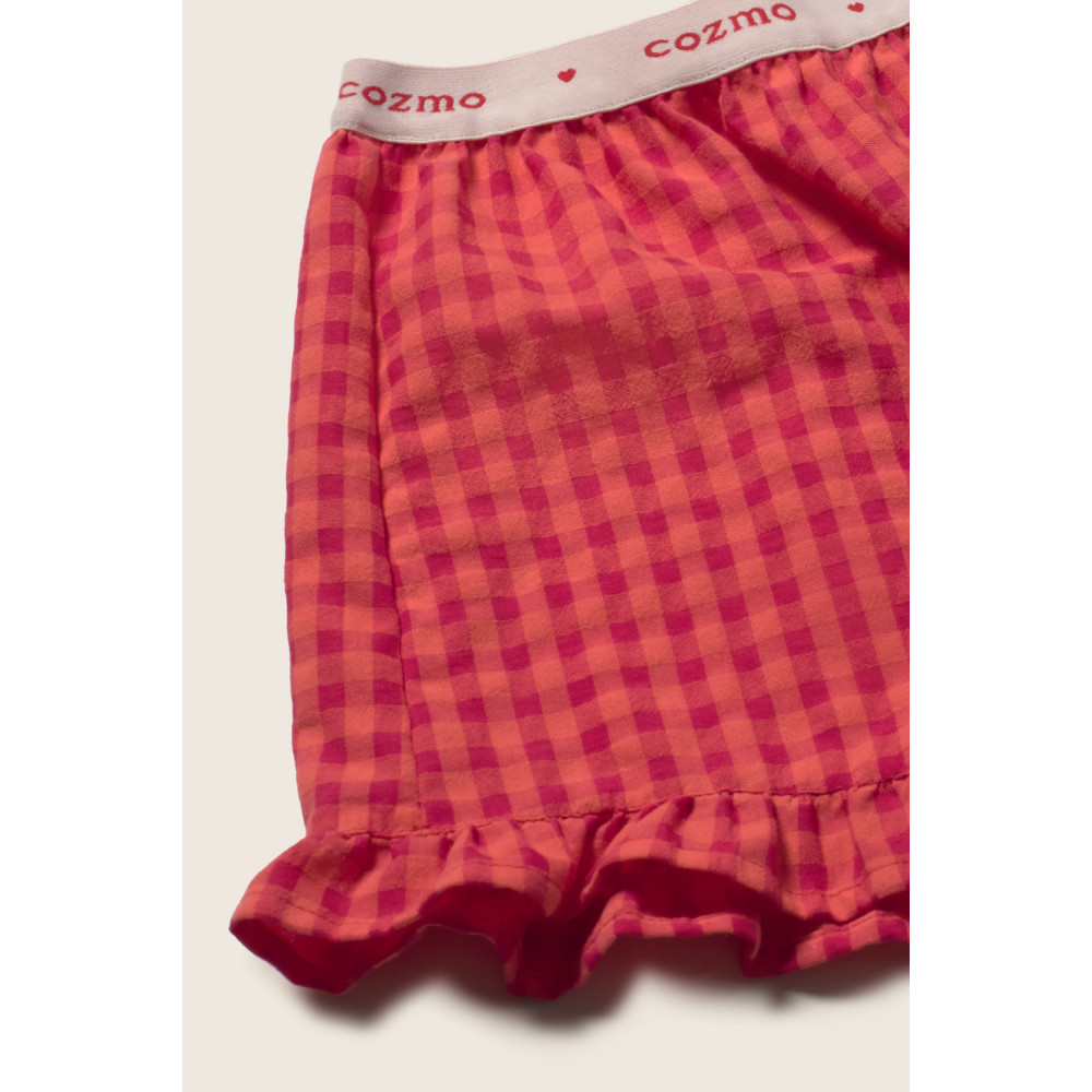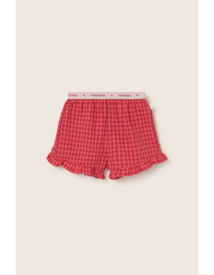 М'які бавовняні шорти зі свіжим та яскравим візерунком у клітинку. Відкритий еластичний пояс «Cozmo» та зібрана обробка з рюшами по низу.