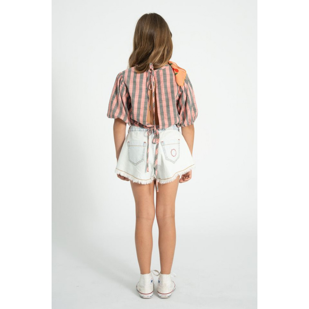 Шорти вільного крою з бахромою та регульованим еластичним поясом. Декор з червоною вишивкою логотипу на одній задній кишені. Прати в холодній воді (макс. 30ºC). Не відбілювати. Сушити при нормальній температурі, при низькій температурі. Прасувати в прохолодній воді (макс. 110ºC). Не піддавати хімічному чищенню. Вологе чищення. Прати навиворіт. Прати окремо. Вплив сонця або інтенсивного світла може призвести до зміни кольору.