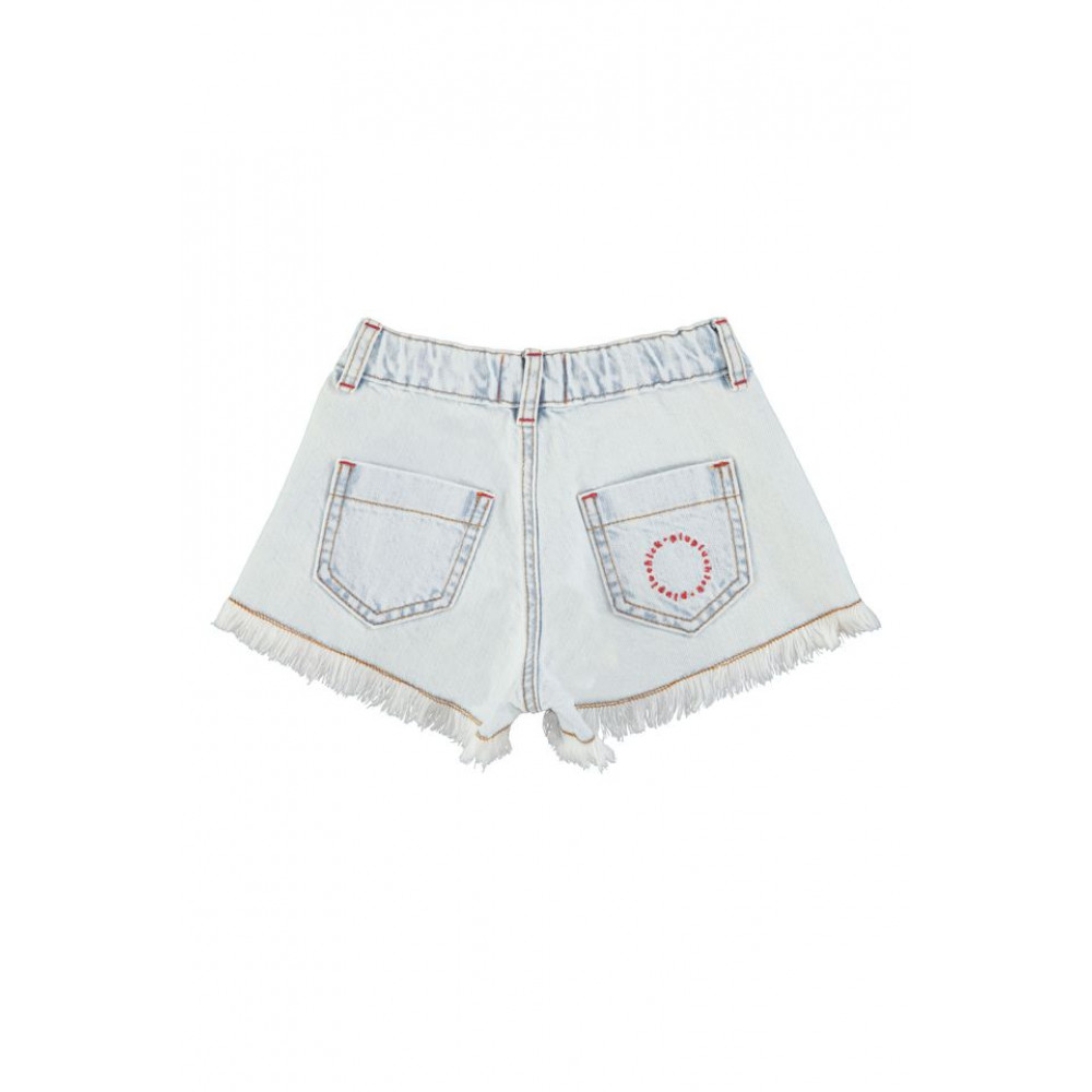 Шорти вільного крою з бахромою та регульованим еластичним поясом. Декор з червоною вишивкою логотипу на одній задній кишені. Прати в холодній воді (макс. 30ºC). Не відбілювати. Сушити при нормальній температурі, при низькій температурі. Прасувати в прохолодній воді (макс. 110ºC). Не піддавати хімічному чищенню. Вологе чищення. Прати навиворіт. Прати окремо. Вплив сонця або інтенсивного світла може призвести до зміни кольору.