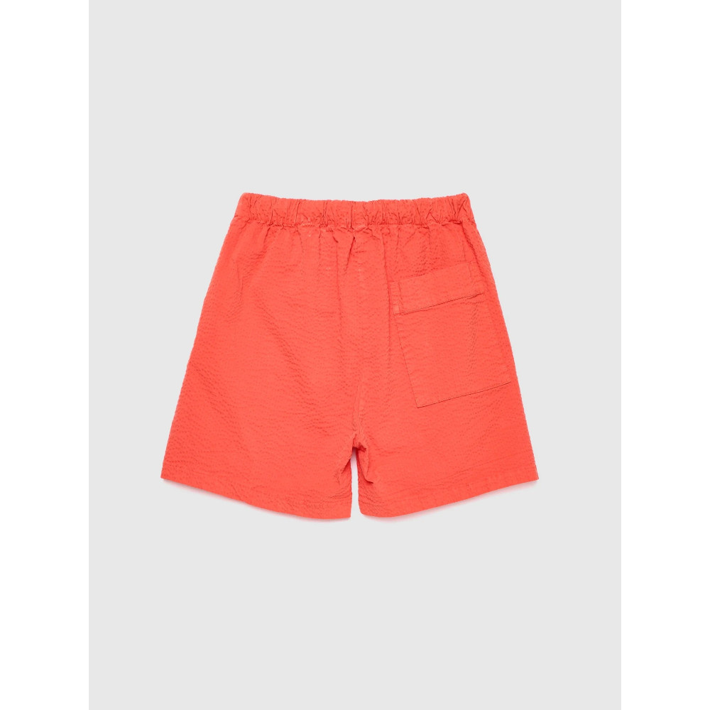 Шорти №07 кольору «Мандариновий червоний» виготовлені з 97% бавовни та 3% еластану. Ці текстуровані шорти мають еластичний пояс, який регулюється за допомогою нашої фірмової стрічки. Вони мають бічні кишені, розрізи збоку та вишитий логотип нашого птаха контрастним кольором. Мають прямий крій. Виготовлено в Іспанії.