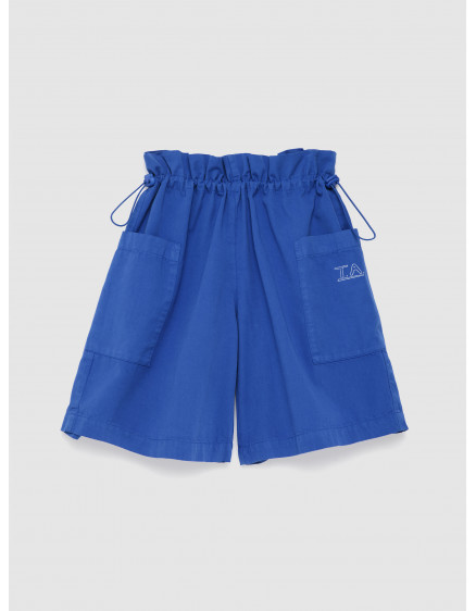 Шорти №12 кольору Campanula виготовлені зі 100% бавовни. Вони мають еластичний регульований пояс, накладні кишені та вільний промежину, а також вишивку T.A. на кишені. Мають оверсайз-крій. Виготовлено в Іспанії.