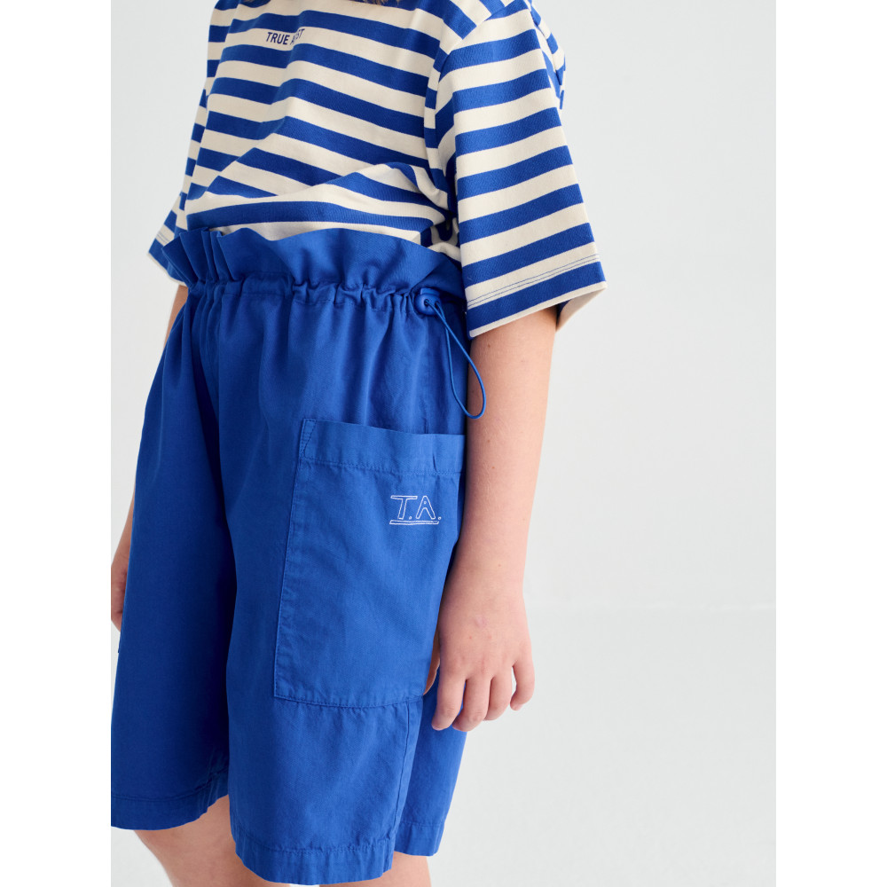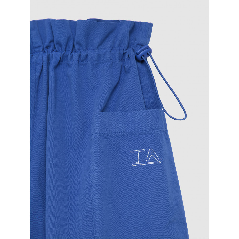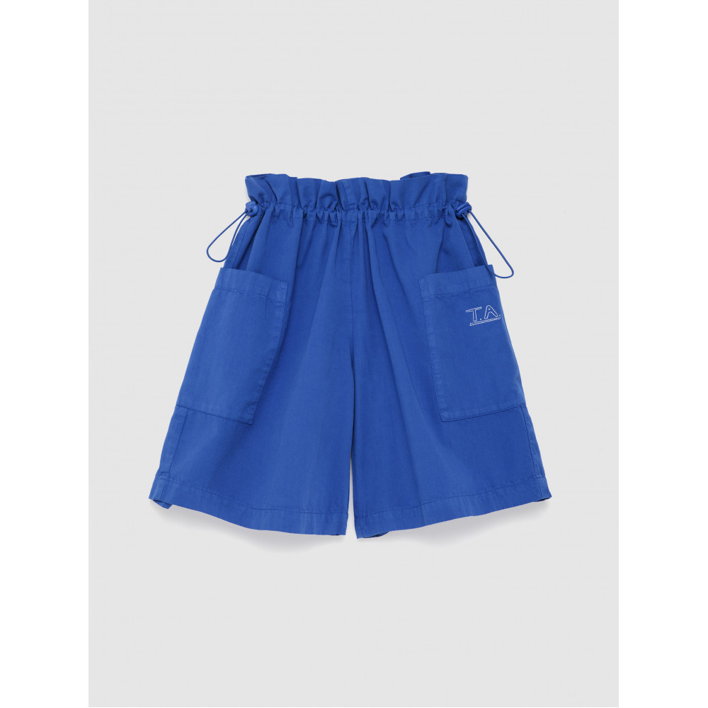 Шорти №12 кольору Campanula виготовлені зі 100% бавовни. Вони мають еластичний регульований пояс, накладні кишені та вільний промежину, а також вишивку T.A. на кишені. Мають оверсайз-крій. Виготовлено в Іспанії.