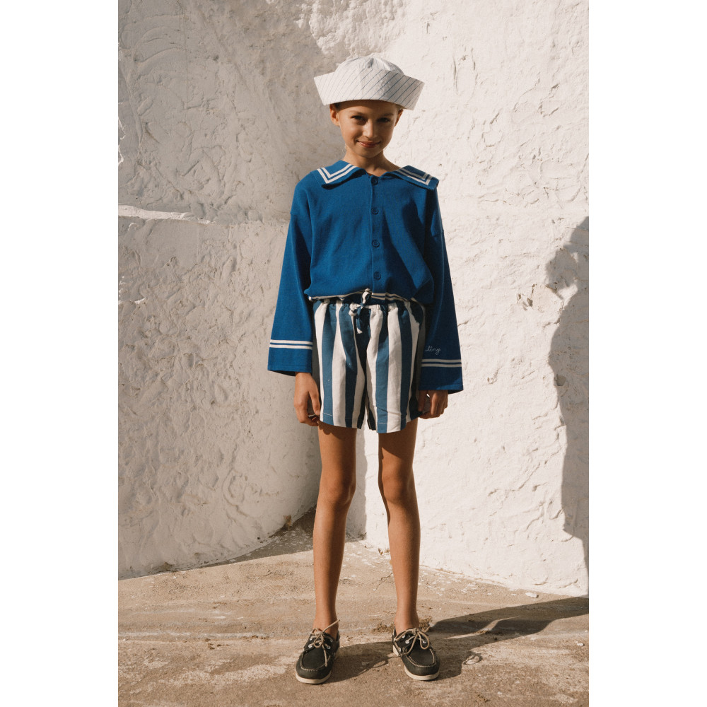 Ці шорти в смужку – ідеальне поєднання комфорту та стилю. Виготовлені з м’якої, дихаючої бавовняної суміші, вони мають вільний крій з еластичним поясом та регульованим шнурком для надійної та комфортної посадки. Розроблені для забезпечення свободи рухів, ці шорти ідеально підходять для дітей, які люблять гратися, досліджувати та бути активними. Універсальний та практичний виріб для щоденного носіння.