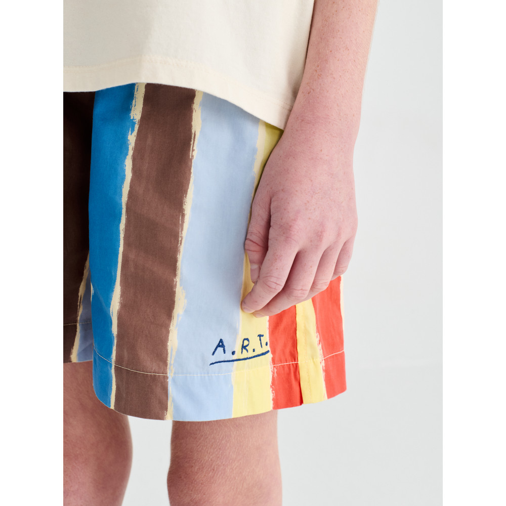 Шорти Strokes виготовлені зі 100% органічної бавовни та мають яскравий візерунок у смужку, що нагадує мазки художника. Вони мають еластичний пояс, бічні кишені та вільний промежину. Мають вільний крій. Виготовлено в Іспанії.