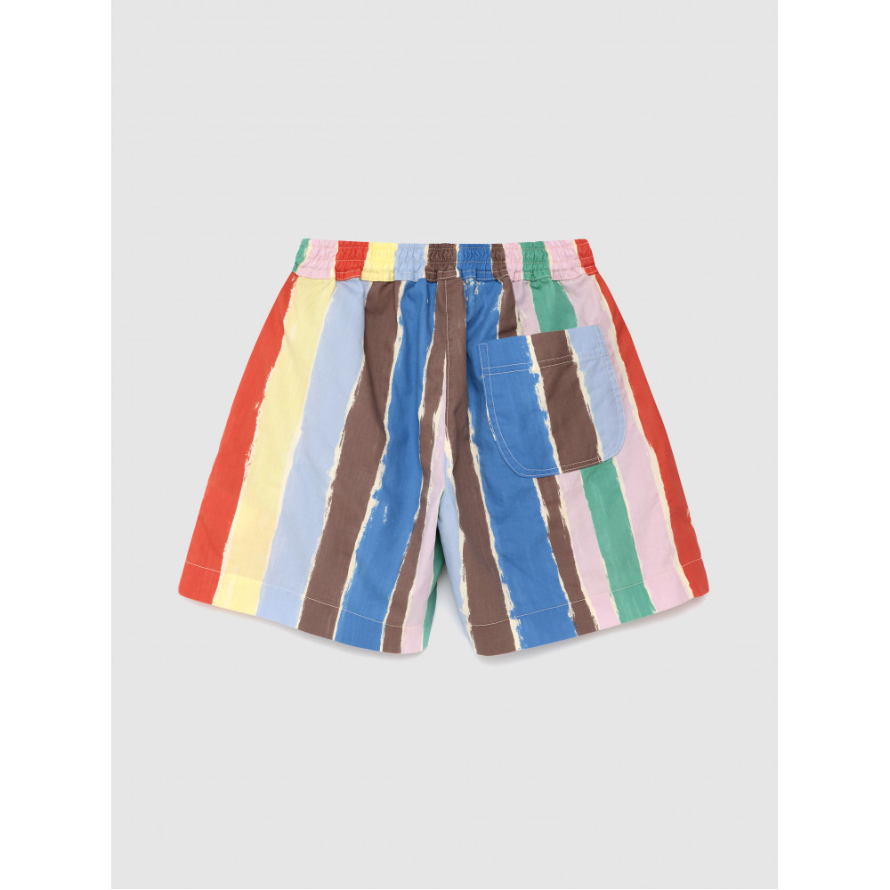 Шорти Strokes виготовлені зі 100% органічної бавовни та мають яскравий візерунок у смужку, що нагадує мазки художника. Вони мають еластичний пояс, бічні кишені та вільний промежину. Мають вільний крій. Виготовлено в Іспанії.