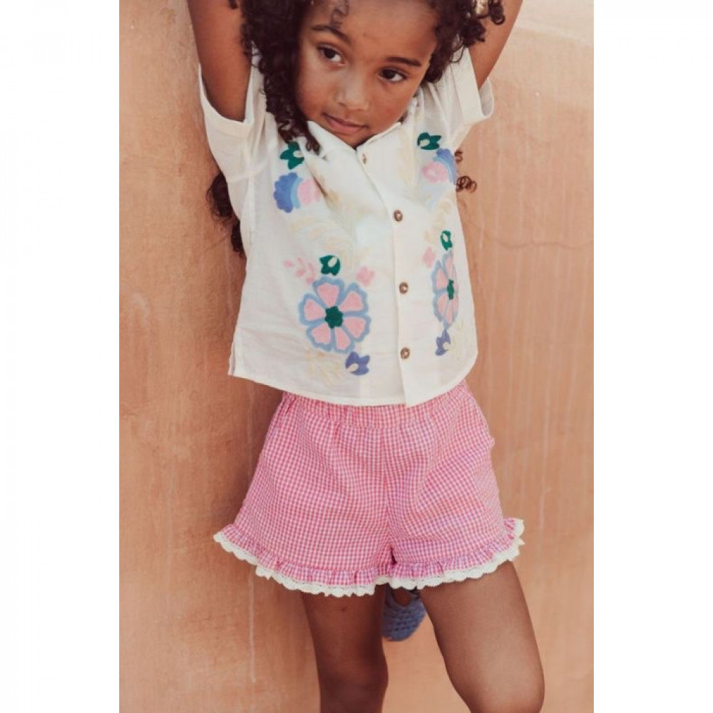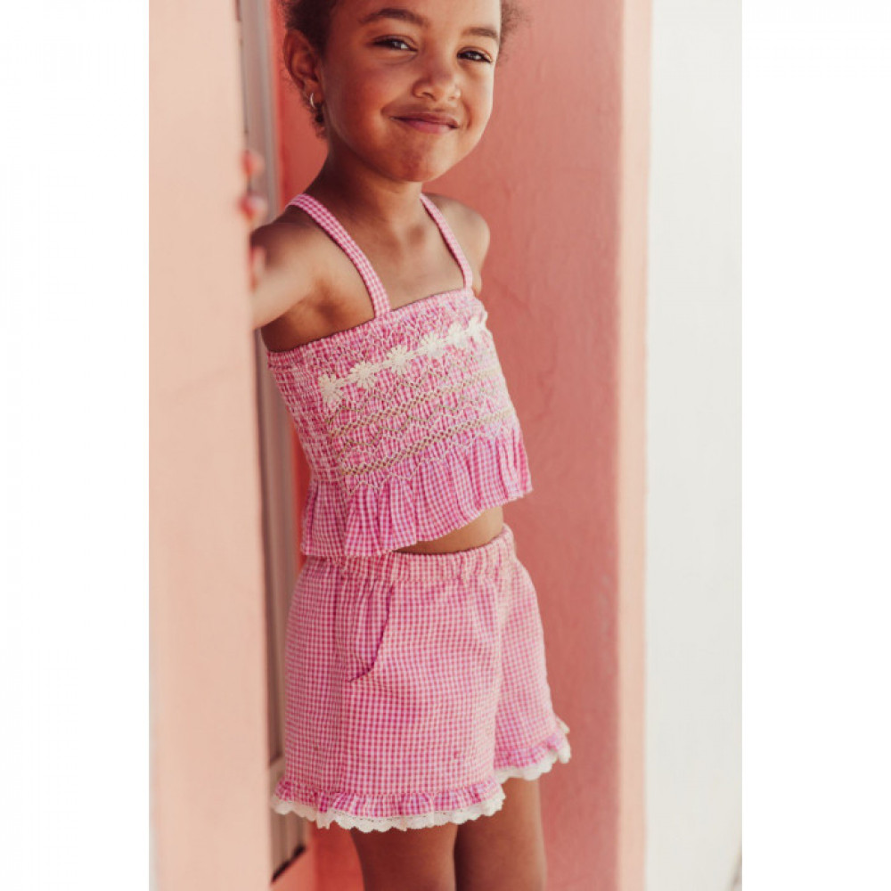 Картаті шорти з декоративною оборкою. Можна прати в пральній машині 30 градусів.