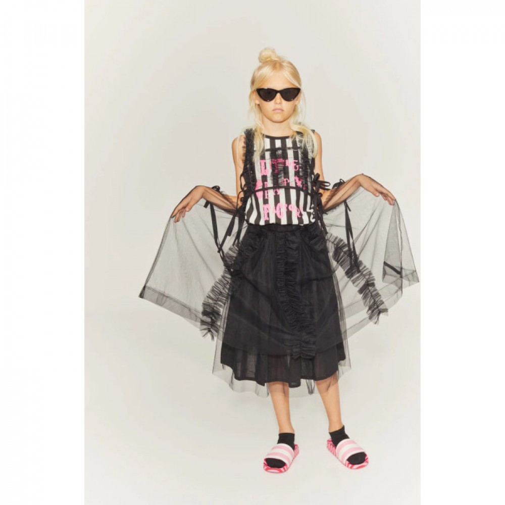 Повітряна спідниця з вертикальними рюшами. Чорний еластичний пояс.