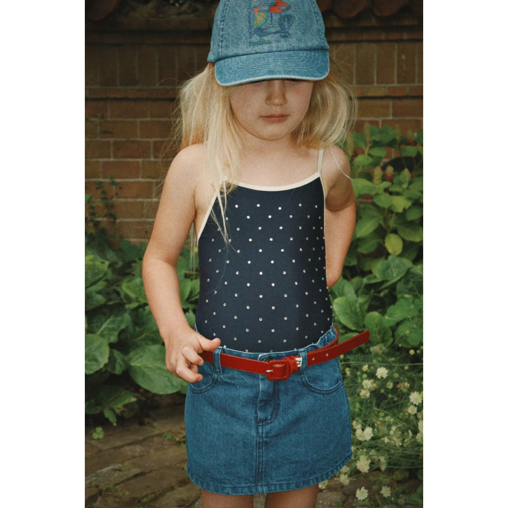 Джинсова спідниця з органічної бавовни класичного дизайну з передніми кишенями, шлевками для ременя та м'яким еластичним поясом для зручної посадки. Має одну задню кишеню з нашим фірмовим логотипом.