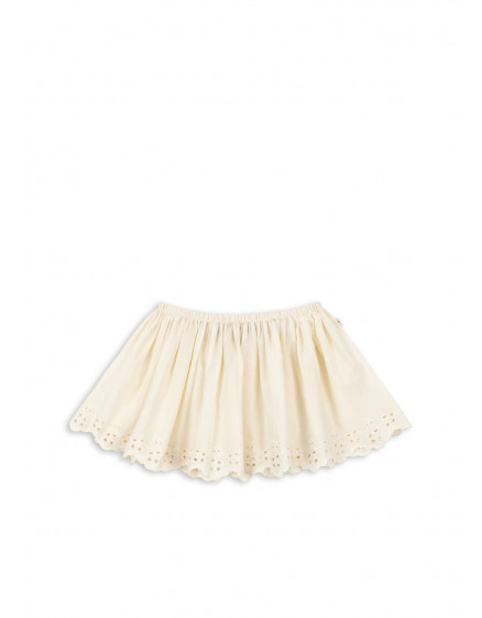 М'яка бавовняна спідниця з романтичною вишивкою англез у формі маленьких вишень вздовж лінії подолу. Має м'який еластичний пояс для комфортної посадки.