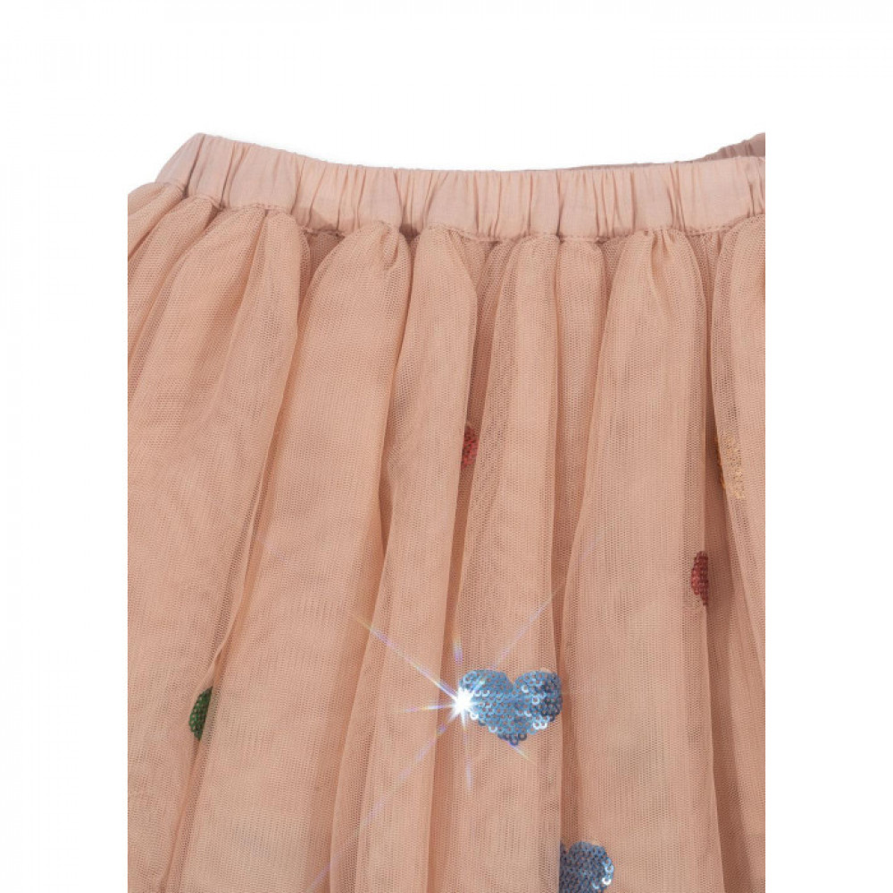Об'ємна спідниця з шарами фатину та блискучими деталями.