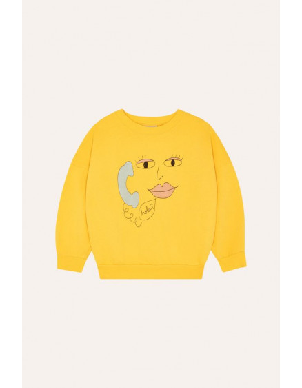 Светр із кумедним принтом обличчя, яке розмовляє по телефону. З оверсайз-кроєм та ребристими манжетами та горловиною для більшого комфорту. Це дуже універсальний одяг, який доповнить будь-який літній образ.