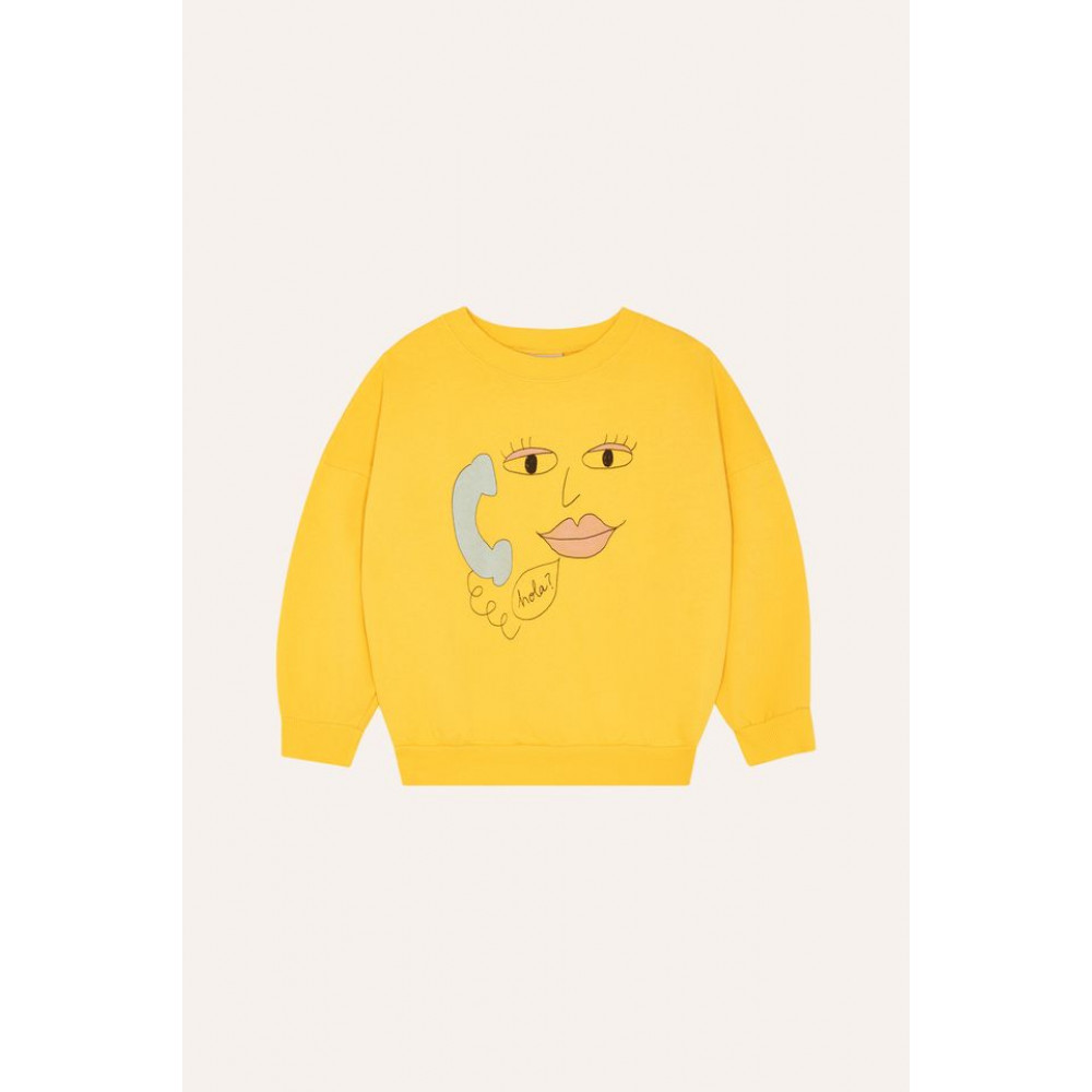 Светр із кумедним принтом обличчя, яке розмовляє по телефону. З оверсайз-кроєм та ребристими манжетами та горловиною для більшого комфорту. Це дуже універсальний одяг, який доповнить будь-який літній образ.