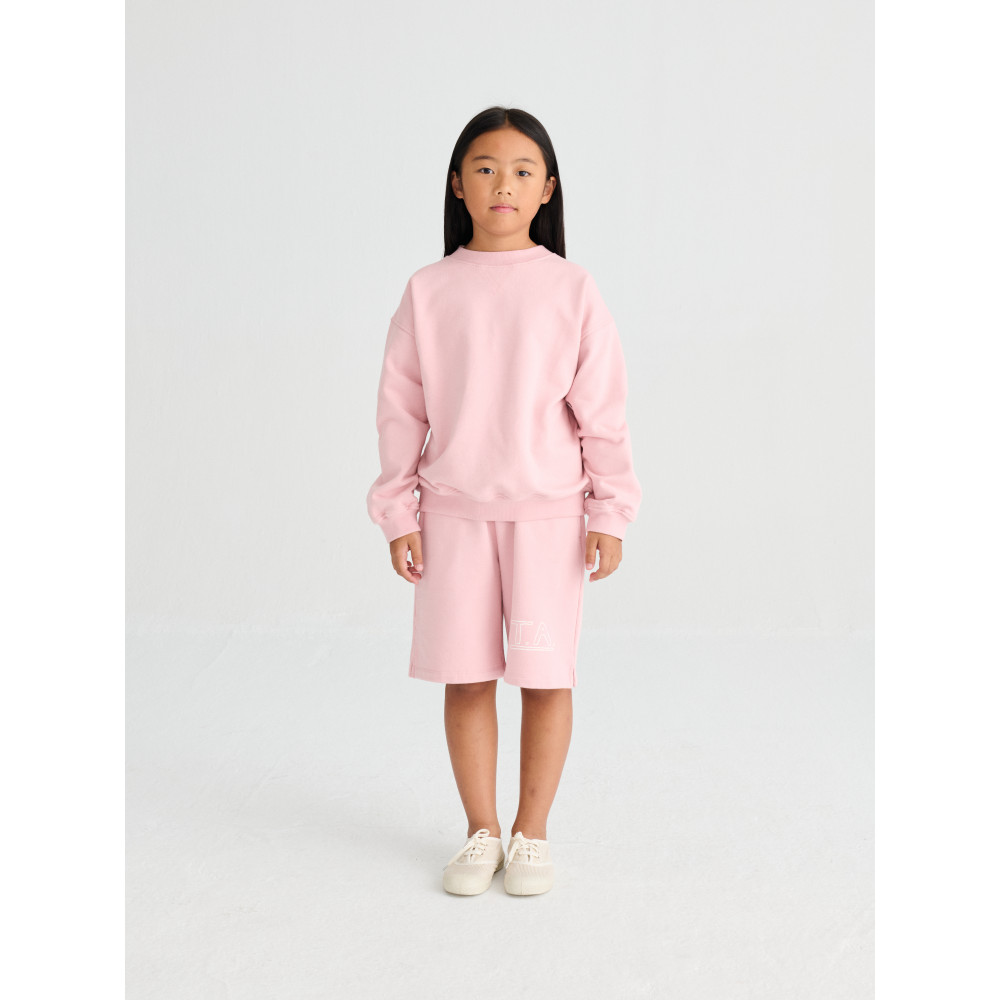 Светр №11 кольору Cameo Pink виготовлений з 98% органічної бавовни та 2% еластанового флісу. Ззаду він прикрашений сезонним принтом True Artist, а спереду — вишивкою у вигляді маленького птаха. Він має круглий ребристий комір, спущені плечі, а також ребристі манжети та низ. Має вільний крій. Виготовлено в Португалії.
