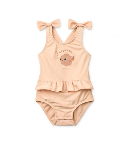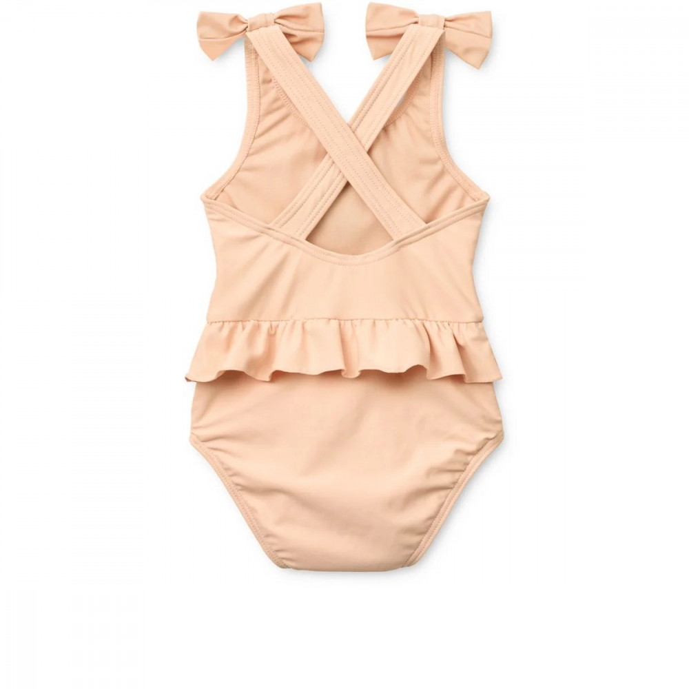 Дитячий купальник AMARA сповнений грайливого шарму, ідеально підходить для найменших літніх шукачок пригод. Зібраний волан на талії, перехрещені бретельки ззаду та м'яка, еластична тканина із захистом UV40+ забезпечують надійну, але водночас м'яку посадку, а милі банти на плечах надають грайливого вигляду літній класиці. Класичний дитячий купальник з грайливим принтом та захистом UV40+ Виготовлений з м'якої та еластичної тканини, повністю на підкладці для комфорту Цей виріб містить 82% переробленого поліестеру, сертифікованого GRS Зібраний волан на талії та перехрещені бретельки з бантами на плечах Застібки на кнопки внизу для легкої зміни підгузків Ідеальні сонячні сімейні пригоди