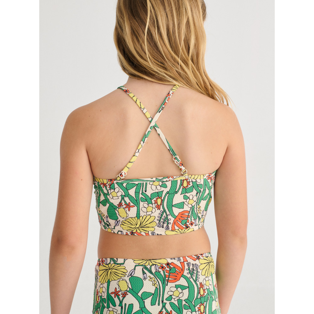 Чудове бікіні Bobo Choses з квітковим принтом Colour Herbalist. Воно має гарні перехресні бретельки на спині та захист від ультрафіолету.