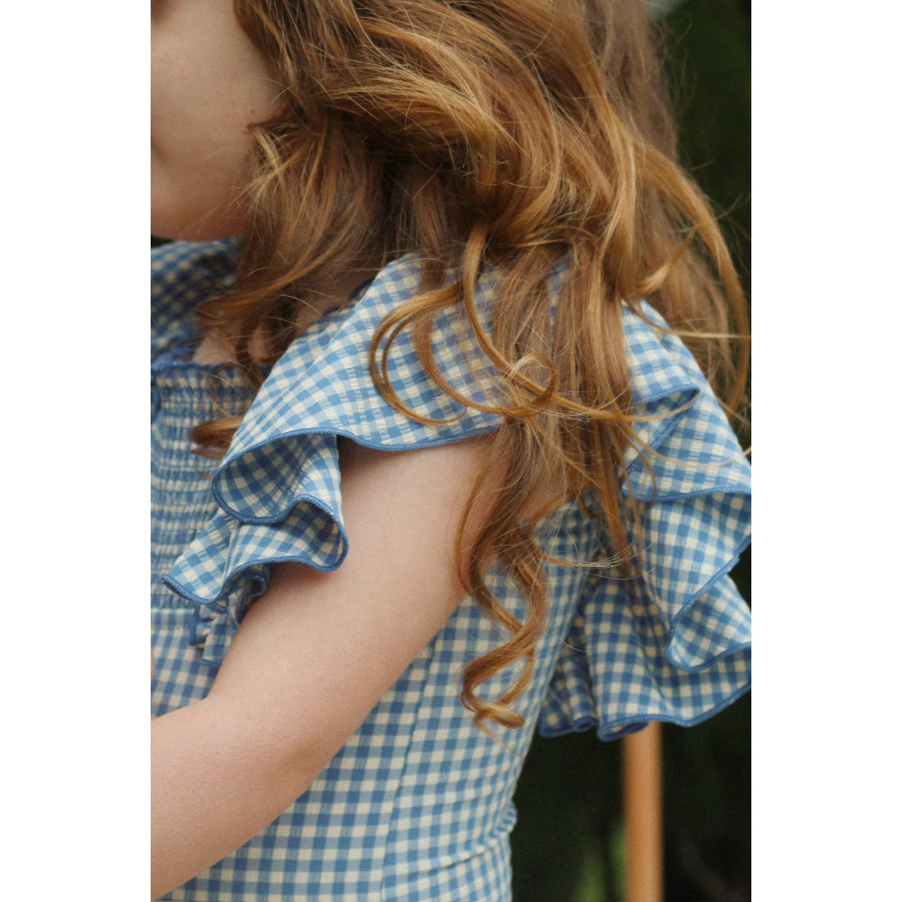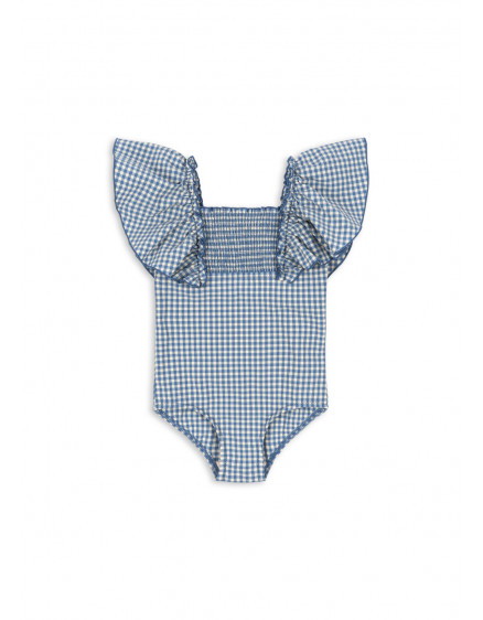 Купальник з еластичної та швидковисихаючої тканини з м'якою тканиною-сірсакером. Модель з квадратним вирізом горловини та декоративним ефектом сорочки.
