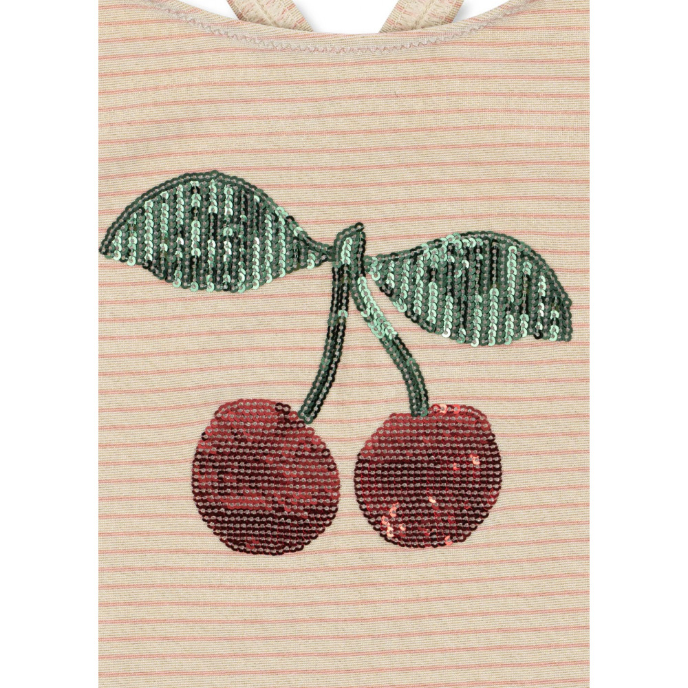 Купальник з блискучим покриттям та декоративною аплікацією з блискіток спереду. Виготовлений з еластичної та швидковисихаючої тканини з класичною перехресною деталлю на спині. Застібаються на кнопки на вирізі для штанин розмірів 6M-18M.