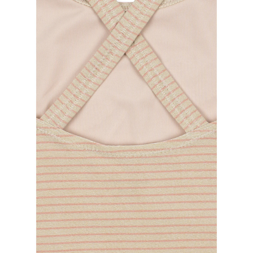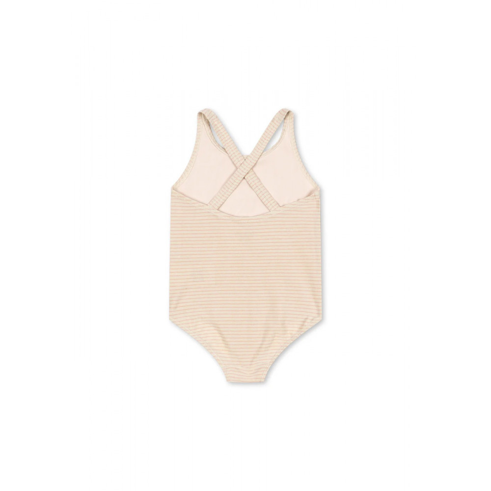 Купальник з блискучим покриттям та декоративною аплікацією з блискіток спереду. Виготовлений з еластичної та швидковисихаючої тканини з класичною перехресною деталлю на спині. Застібаються на кнопки на вирізі для штанин розмірів 6M-18M.