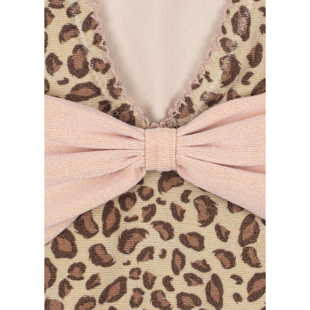 Купальник з м'якої, еластичної тканини з тонкими бретельками та декоративним бантом ззаду. Виготовлений з матеріалу, що швидко висихає, який забезпечує комфорт у веселі сонячні дні. Застібки на кнопки на штанині для розмірів 6M - 18M.
