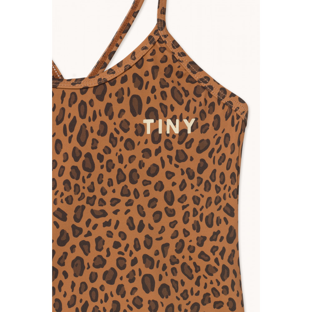 Додайте грайливого відтінку літа з цим купальником на бретельках, виготовленим з м’якої, еластичної тканини для максимального комфорту. З нашим мініатюрним тваринним принтом на світло-коричневій основі та гладким дизайном спереду, він пропонує сучасний та чарівний вигляд — ідеально підходить для сонячних днів.