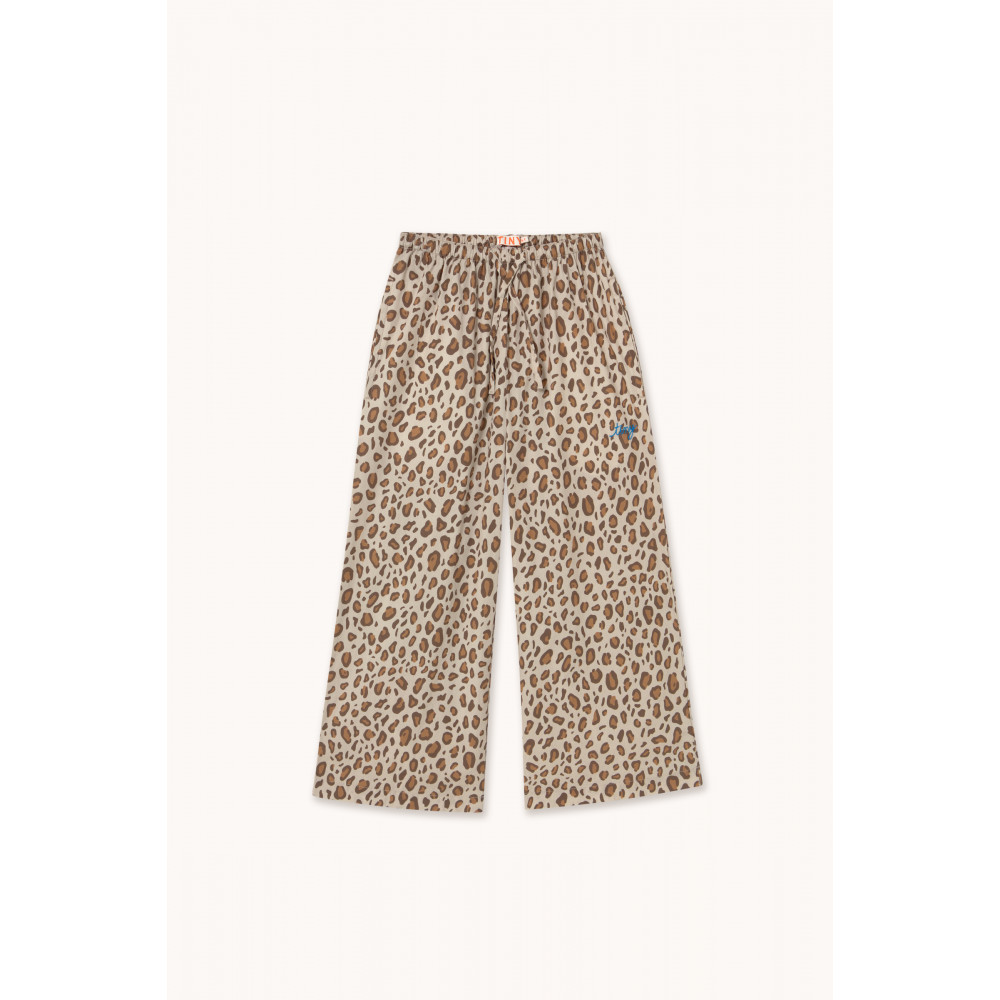 Ці довгі штани з анімалістичним принтом на темно-ванільній основі поєднують комфорт і стиль у вільному, універсальному дизайні. Вони мають прямий крій, еластичний пояс з регульованими шнурками, бічні внутрішні кишені та задні кишені для практичного та функціонального доповнення. Ідеально підходять для невимушеного образу з підкресленою індивідуальністю.