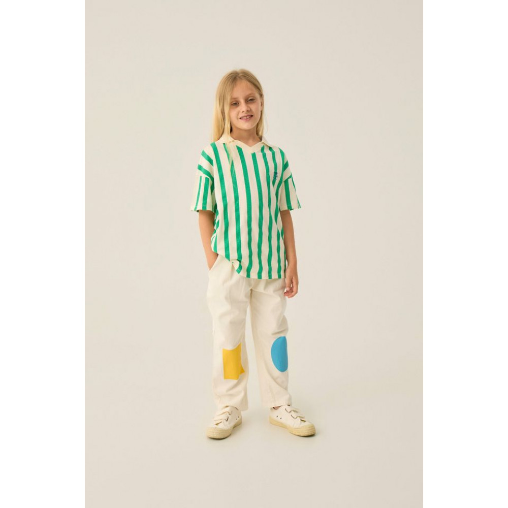 Штани з високоякісної бавовняної тканини з інтенсивним пранням, що робить кожен виріб унікальним та особливим. З кольоровим відтінком на колінах, це ідеальний одяг для доповнення літнього гардеробу.