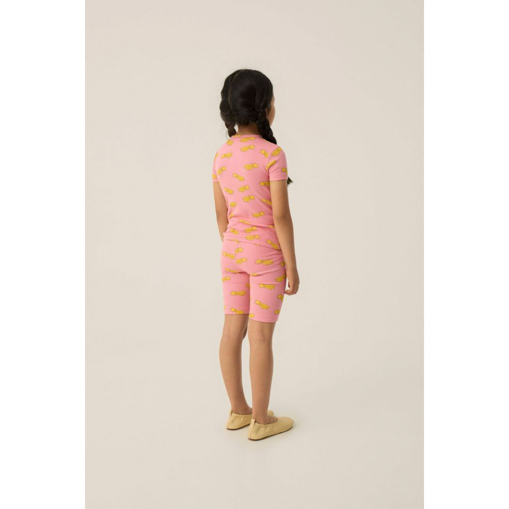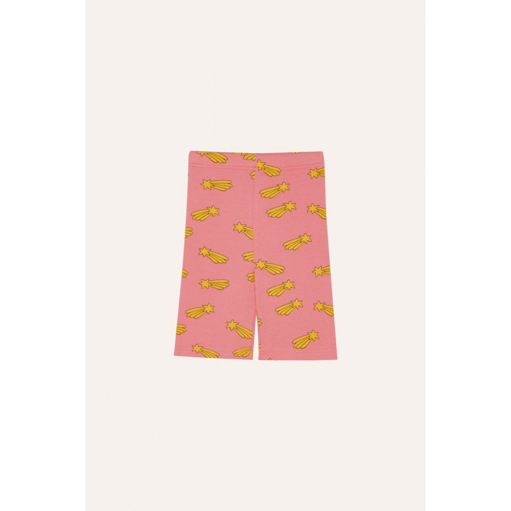 Байкерські легінси в ребристу тканину, 100% бавовна GOTS, з кумедним принтом у вигляді падаючих зірок по всій поверхні. Мають еластичну внутрішню стрічку для більшого комфорту. Носіть їх усе літо!