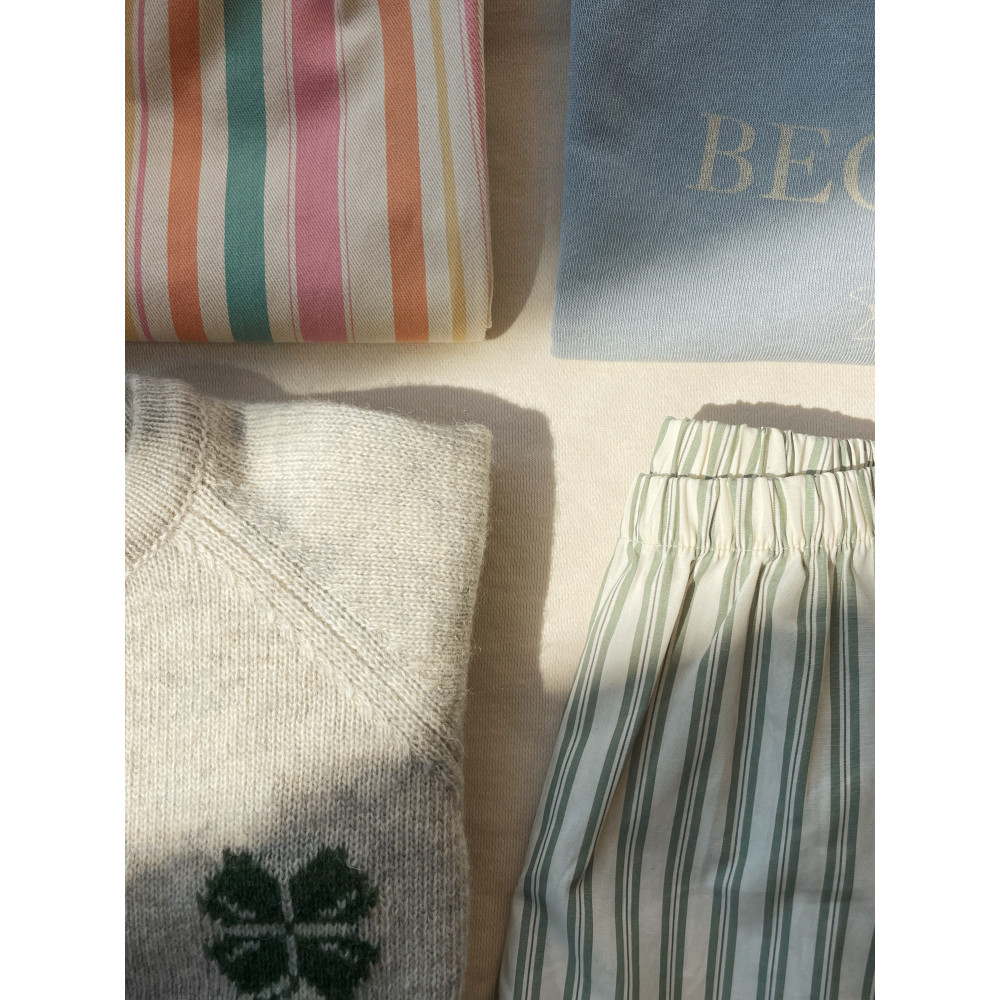 М'які штани з трохи щільнішої саржевої тканини з органічної бавовни. Класичний дизайн зі звуженими штанинами, гнучким еластичним поясом та декоративними складками вздовж талії.