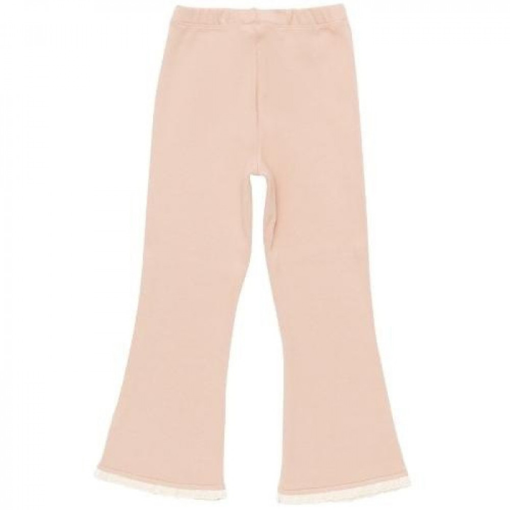 Ці красиві брюки-кльош виготовлені в старовинному рожевому кольорі, рожевому мокко, і мають мереживну обробку на кінцях штанин. Штани мають еластичну талію, приємну посадку і виготовлені з м'якої органічної бавовни, що забезпечує зручну посадку.