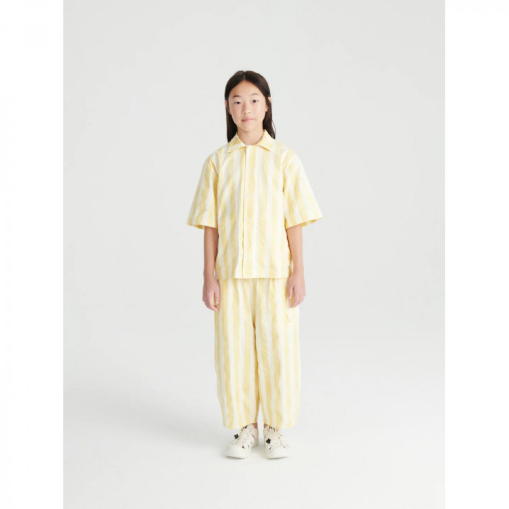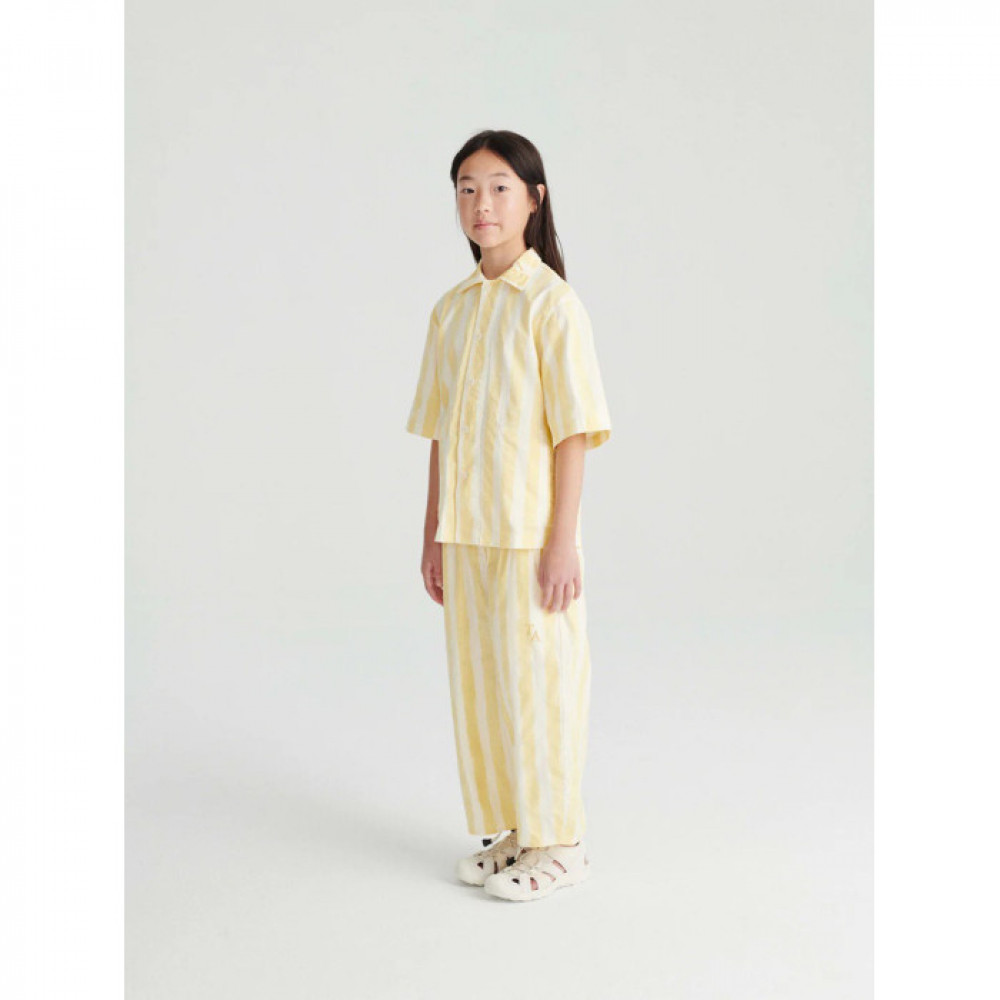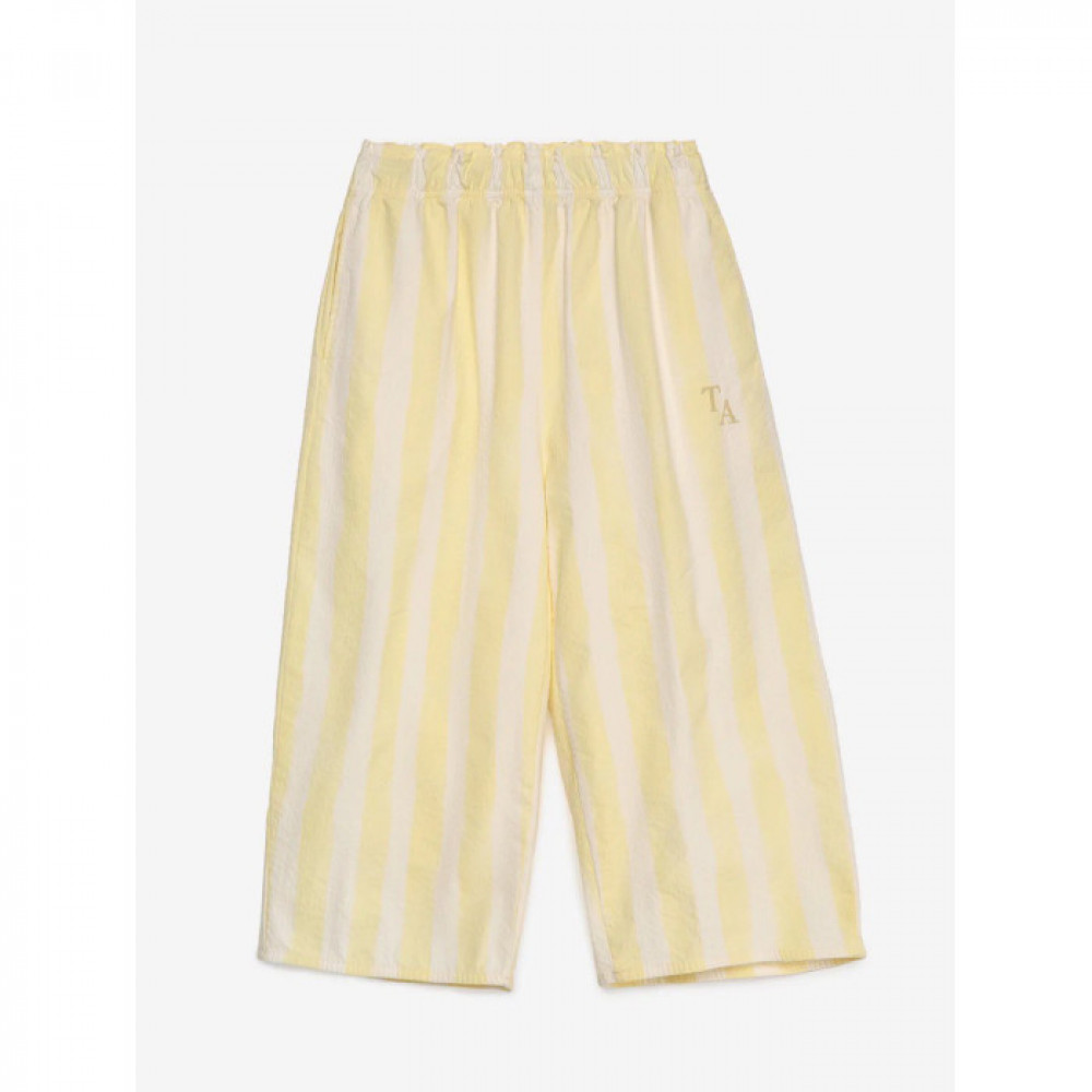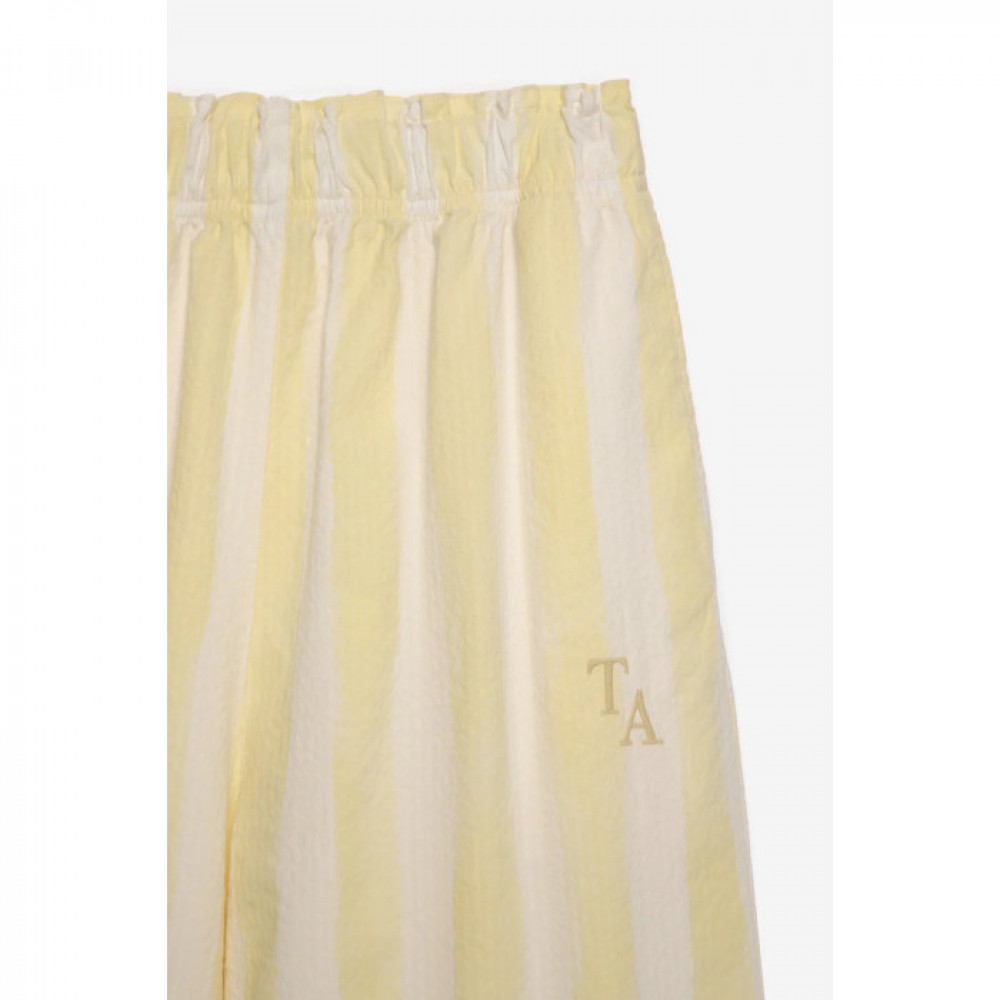 Штани Double Cream виготовлені з 97% бавовни 3% еластану. Ці штани-кюлоти в смужку мають еластичний пояс, бічні кишені та невелику вишивку TA спереду. Мають широкий крій. Зроблено в Іспанії.