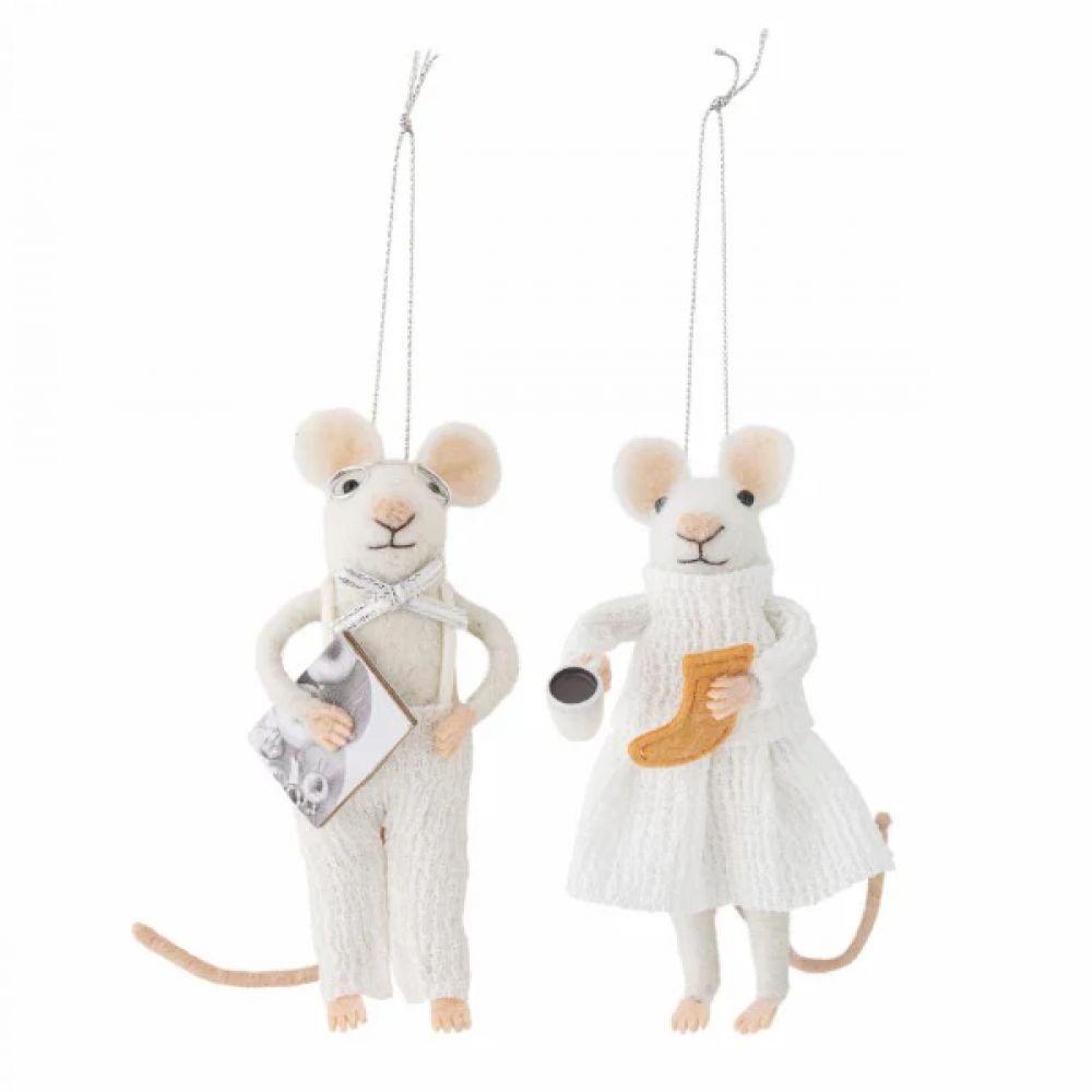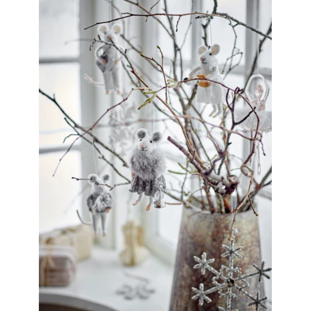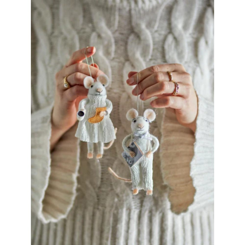 Ці маленькі мишенята поширюють радість, де б їх не розмістили, чи то на гілках, дверних ручках, чи, можливо, на різдвяних подарунках. Щороку в родину можна додавати нову мишенятку. Ці милі прикраси постачаються в наборі з двох маленьких мишенят, виготовлених з валяної вовни та прикрашених найдрібнішими деталями. Цей набір містить мишенятко, яке тримає кухоль та різдвяну панчоху, та мишенятко, яке тримає різдвяну книгу. Висота 12 см, набір з 2 штук