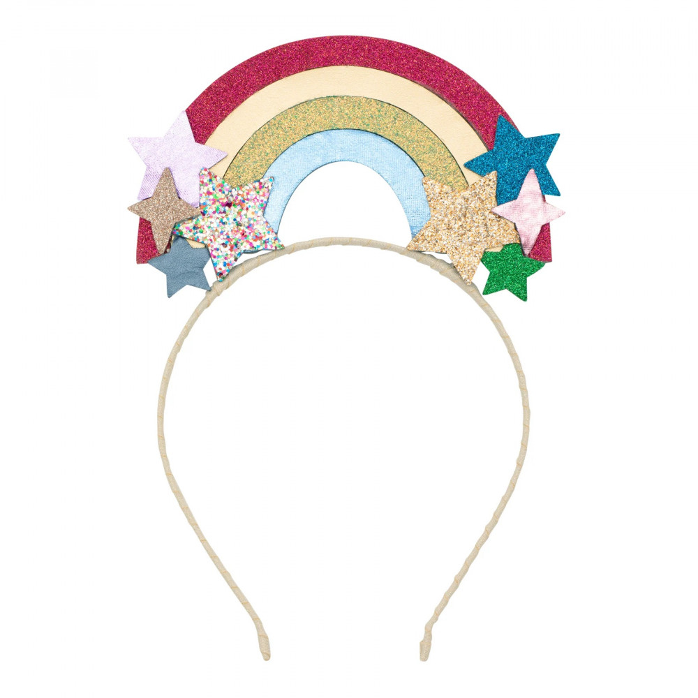 Привертайте увагу, куди б ви не пішли, з нашим стильним та барвистим райдужним головним убором! Ідеально підходить для вечірок чи просто так – цей яскравий виріб обов'язково приверне до вас увагу! Головний убір розміром для дітей віком від 3 до 10 років Смужка «Аліса» з блискучої тканини, обмотана стрічкою, прикрашена яскравою великою веселкою, покритою вісьмома мерехтливими зірками, все виготовлено з поєднання блискіток та м'якої металевої штучної шкіри. Увага! Не підходить для дітей віком до 36 місяців.