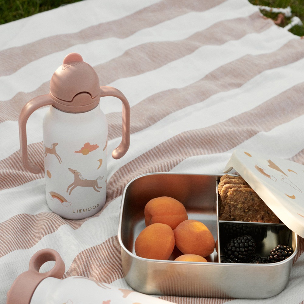 Інноваційна та зручна для малюків пляшка для води KIMMIE має дві зручні ручки на кришці, вбудовану трубочку та виготовлена з 80% переробленої високоякісної нержавіючої сталі. Вона розроблена таким чином, щоб маленькі ручки могли легко її тримати, коли вчаться нахиляти та пити воду самостійно. Інноваційна та зручна для малюків ізольована пляшка для води об'ємом 250 мл З 2 ручками, які дозволяють маленьким ручкам легко тримати та нахиляти її Виготовлена з 80% переробленої високоякісної нержавіючої сталі Герметична, вбудована м'яка силіконова трубочка Зберігає рідини холодними до 12 годин та гарячими до 6 годин Діаметр (см) 6,5; Висота (см) 16; Ширина (см) 11,5; Місткість (мл) 250
