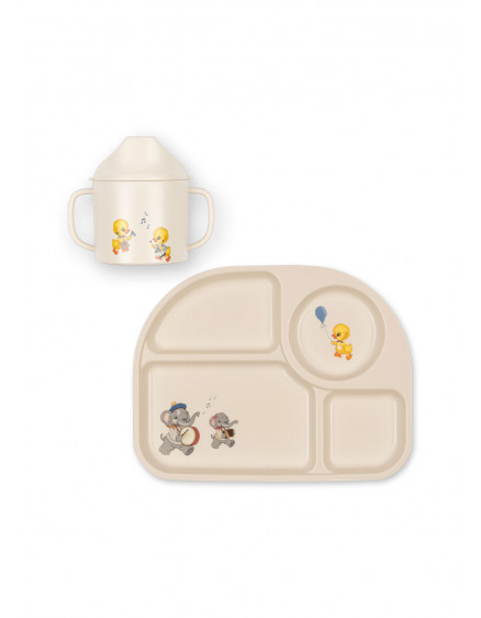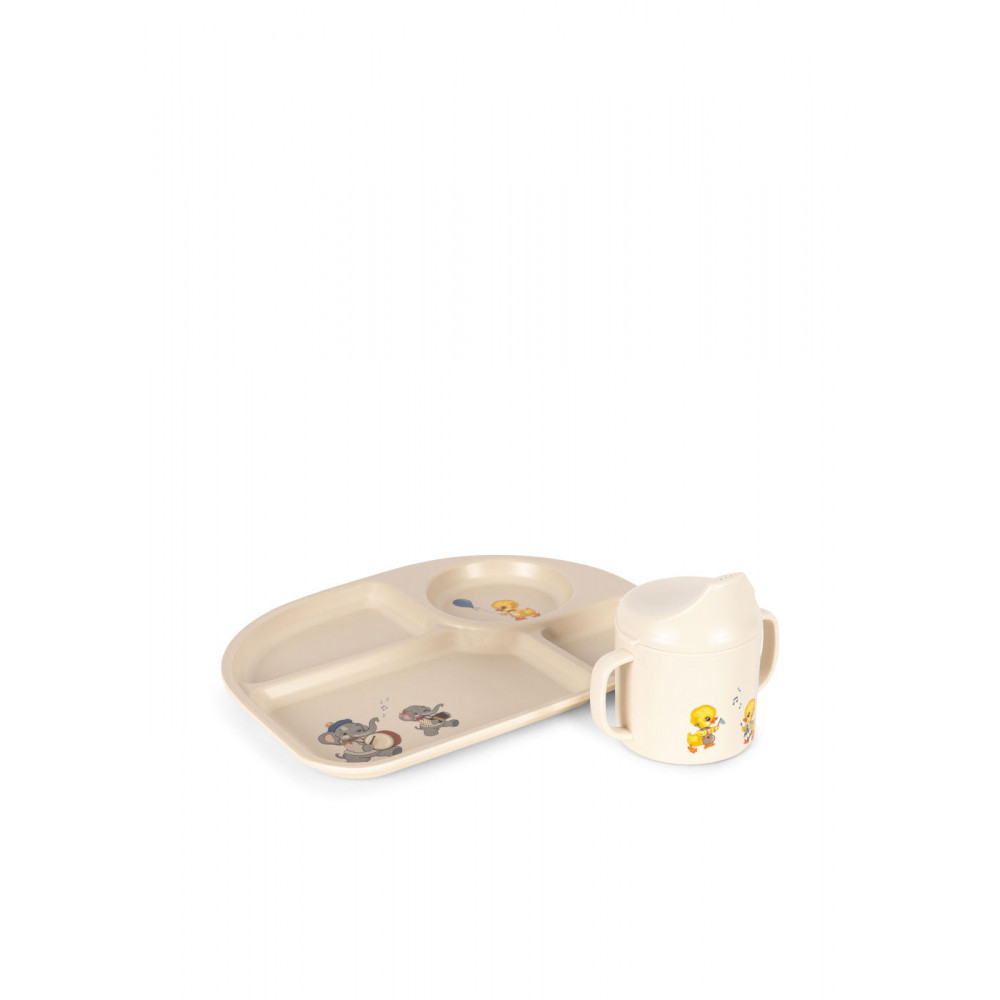 Все колись буває вперше, то чому б не зробити його милим та веселим! Цей обідній набір розроблений спеціально для малюків, які тільки починають свою подорож у захопливий світ твердої їжі. Набір включає герметичну чашку для пиття та практичну тарілку, яка розділяє їжу на менші частини, що полегшує дослідження вашій дитині. Виготовлено з безпечних харчових матеріалів у зручному для дітей дизайні. Відповідна температура: від -20 до 100 градусів Цельсія. Чищення: Набір можна мити в мікрохвильовій печі та посудомийній машині. Підходить для дітей віком від 6 місяців.