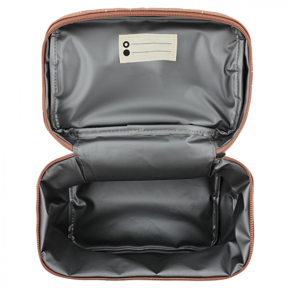 Відтепер ви можете брати свій улюблений обід із собою в цій зручній сумці для обіду. Це термосумка, а це означає, що вона збереже ваш обід як теплим, так і холодним. Сумка для обіду також має зовнішнє покриття, що робить її водонепроникною! М'які вушка додають грайливості, а ручка робить сумку для обіду зручною та компактною. Сумка має велику блискавку для легкого відкривання та закривання. Всередині також є іменна етикетка, тому вам не доведеться турбуватися про те, що ви втратите свого друга для обіду. Окрема маленька кишеня на задній частині сумки поміщає печиво або перекус, які не потрібно зберігати при певній температурі. Ця весела сумка для обіду ідеально поміщає пляшку з водою Trixie та ланч-бокс. Розміри (ДхШхВ) 21x14x14