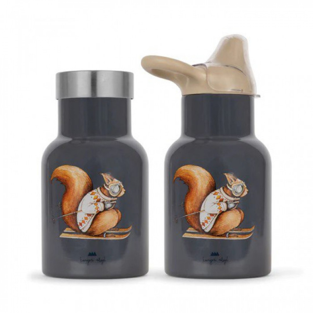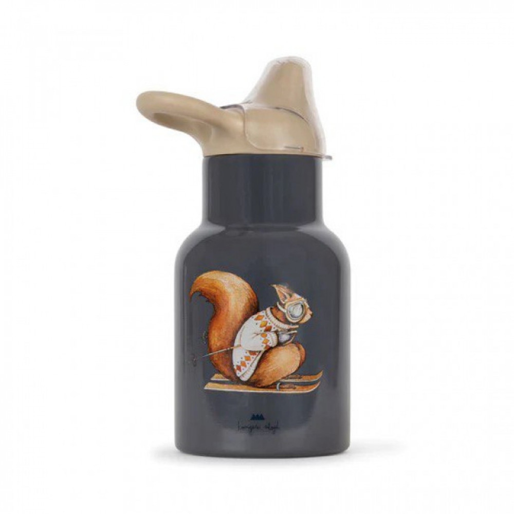 Термопляшка виготовлена ​​з 100% нержавіючої сталі. Пляшка поставляється з двома кришками та прозрачнім ковпачком для поїльника. Містить 250 мл. Розміри: 72х135 мм