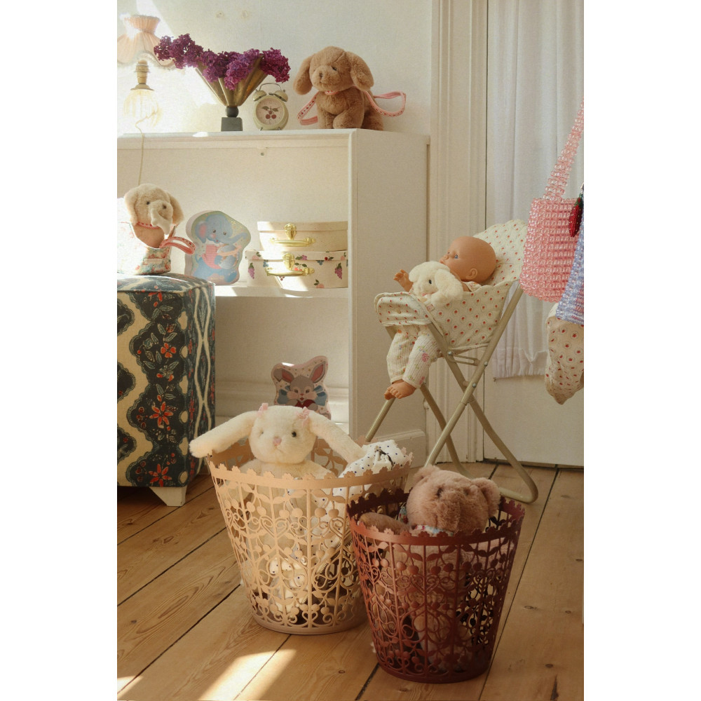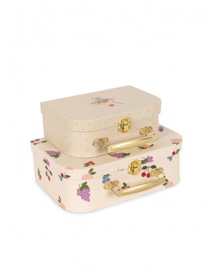 Набір із двох картонних ігрових валізок із металевою ручкою. Легко складати та зберігати, оскільки менша валіза поміщається у більшу. Ідеальне місце для безпечного зберігання маленьких скарбів. Виготовлено з щільного картону з металевою ручкою. Підходить для дітей віком від 3 років. Зверніть увагу: цей виріб призначений лише для декорування та зберігання.
