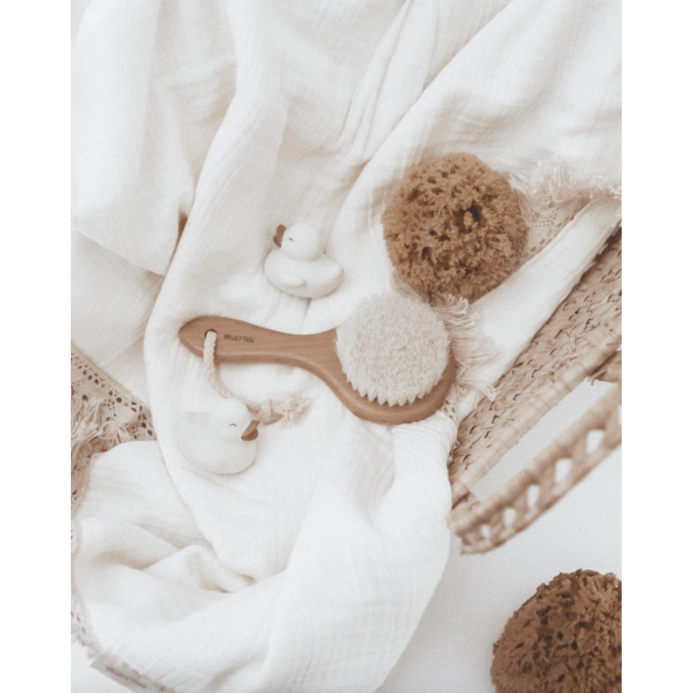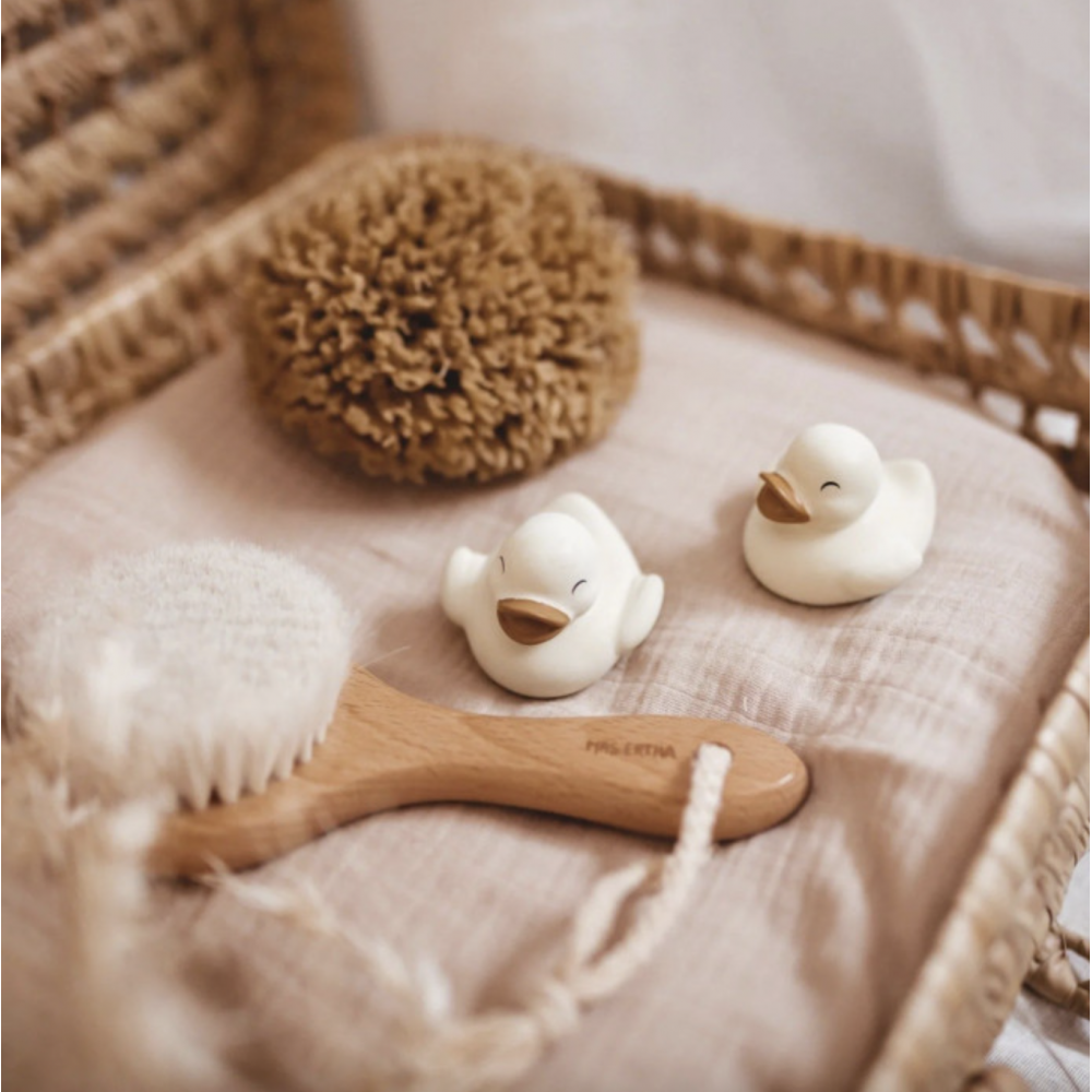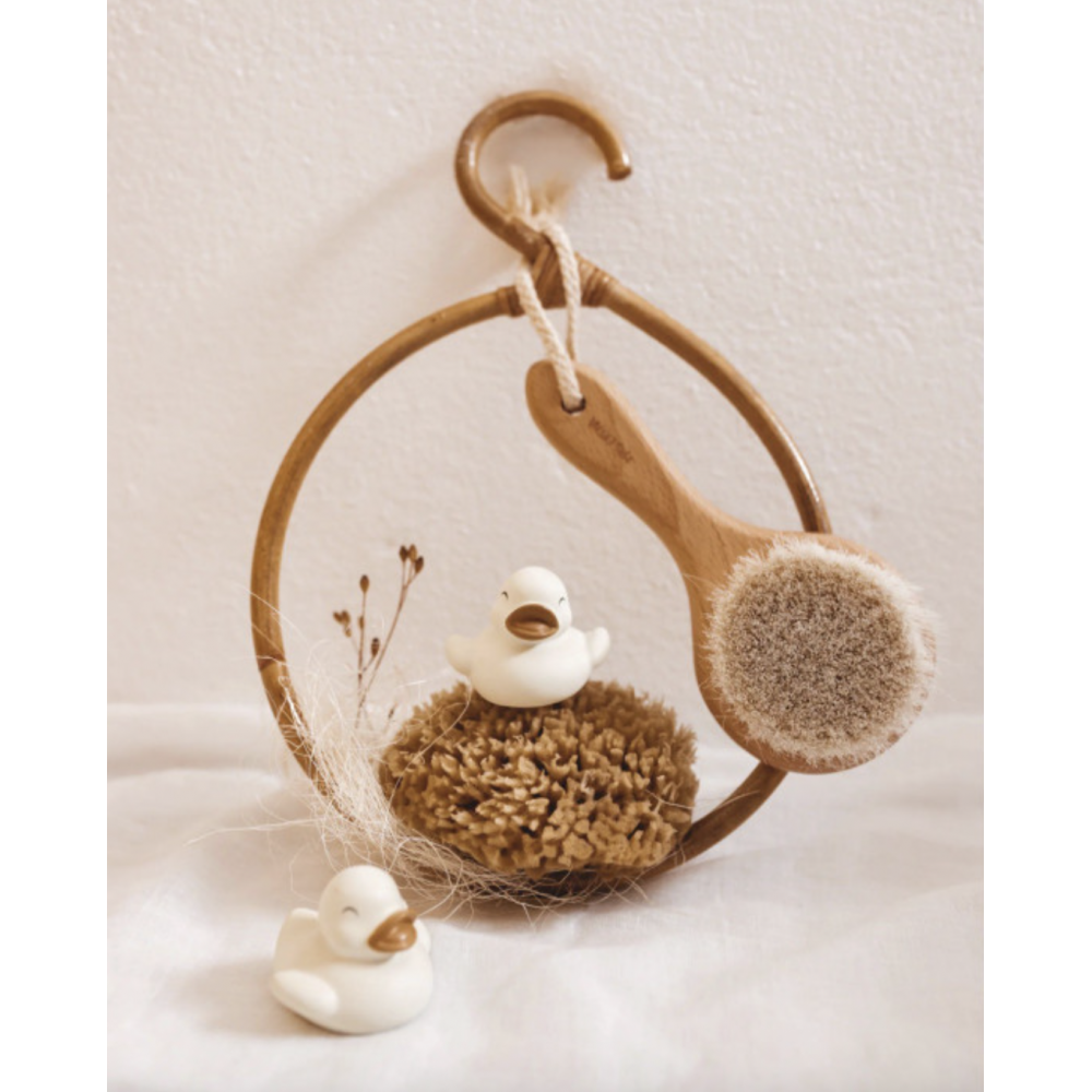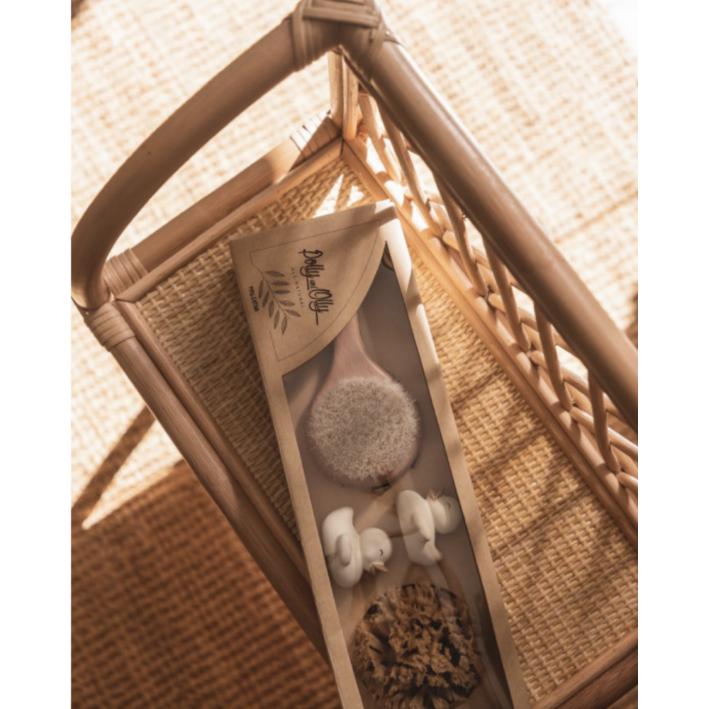 Набір для купання Polly and Olly - найкращий варіант для всіх малюків. Він виготовлений виключно з натуральних матеріалів, які забезпечують максимальний комфорт для вашого малюка. ЦЕЙ КОМПЛЕКТ ВКЛЮЧАЄ: - Щітка з сосни з щетиною з натурального хутра дуже м'яка, ідеальна для новонароджених. Натуральна щетина сприяє більш дбайливому розчісування і рекомендована для природного процесу видалення корочек. - 100% натуральна морська губка, традиційно зібрана в Середземному морі (Греція). Цей процес сприяє їх росту та регенерації, надаючи губці велику міцність і м'якість. Кожна губка має унікальну форму та відрізняється від інших, оскільки вони не піддаються жодному процесу трансформації після того, як їх збирають. - Дві гумові качечки, які видають звуки, щоб зробити ванну ще веселішою.