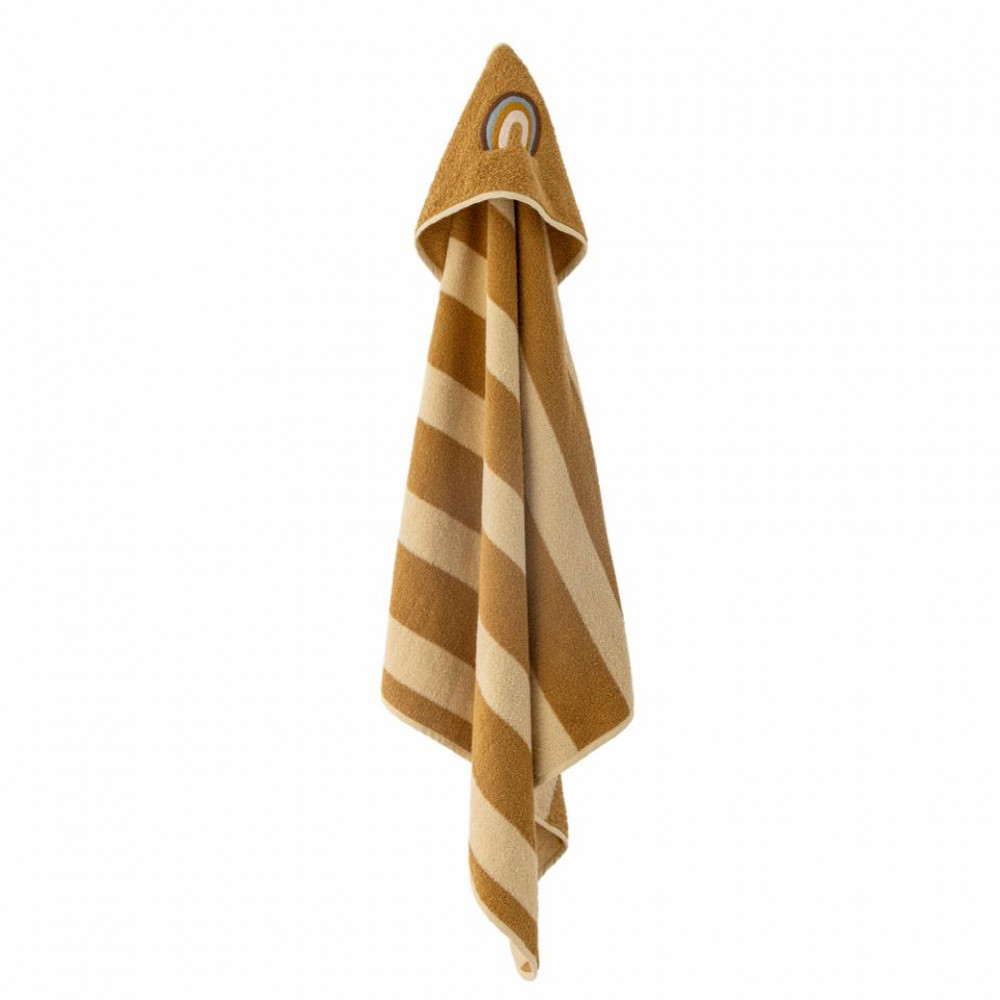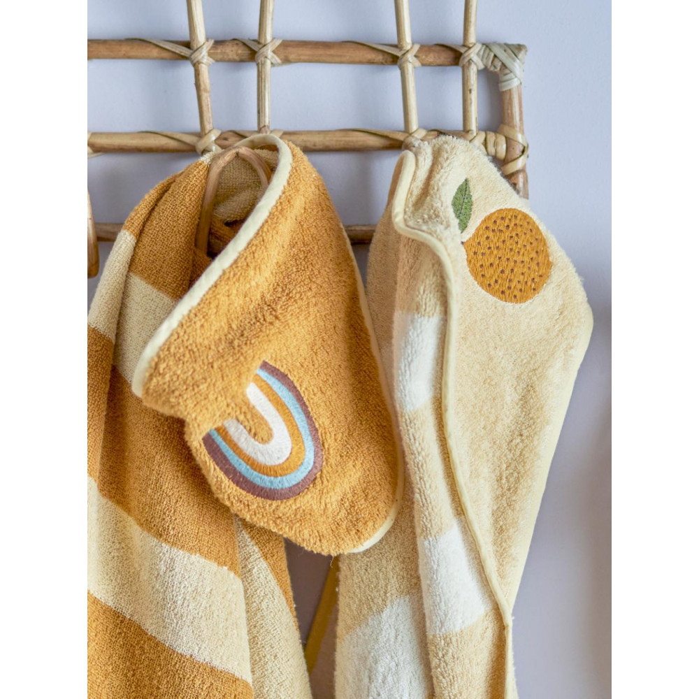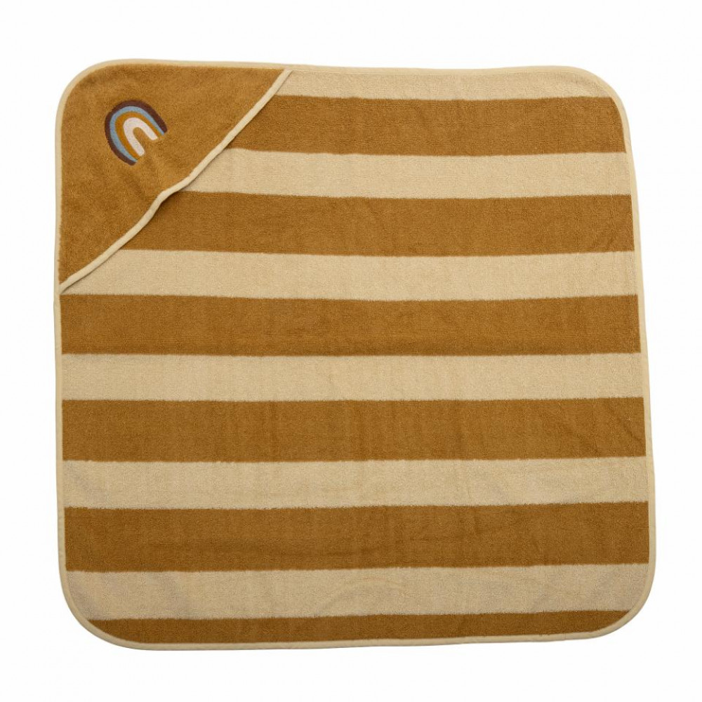 Рушник Agnes від Bloomingville MINI – ідеальний вибір для купання вашої дитини. Виготовлений з бавовни, сертифікованої OEKO-TEX, цей рушник у коричневу смужку забезпечує ніжність та комфорт для шкіри вашої дитини. Чарівний дизайн з вишитою веселкою на капюшоні додає затишку ванній кімнаті. Красивий та практичний рушник Agnes – ідеальний подарунок на хрещення або вагітність, який оцінять як діти, так і батьки. Д78xШ78 см