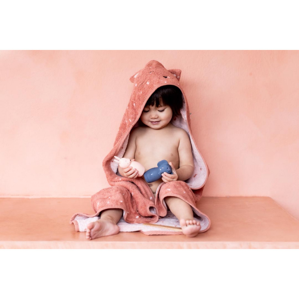 Усі необхідні товари для малюків у цій новій колекції виготовлені з чудово м’якої махрової тканини. Веселощі з тваринами продовжуються і у ванній кімнаті! Після освіжаючої ванни або приємного душу наші улюблені тварини готові обійняти вашу малечу! Оскільки ці вироби щільно контактують зі шкірою малюків, вони виготовлені зі 100% органічної бавовни. Розміри (ДхШхВ) 75x75x0