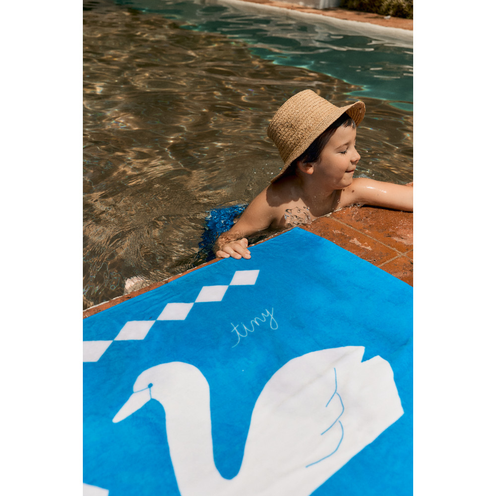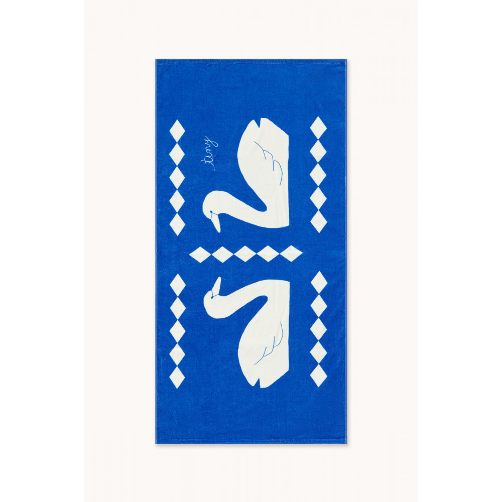 Цей пляжний рушник із принтом лебедів ідеально підходить для пляжного відпочинку у стильному та веселому стилі. Виготовлений з м’якої 100% бавовняної тканини. Приблизний розмір: 70 см x 140 см