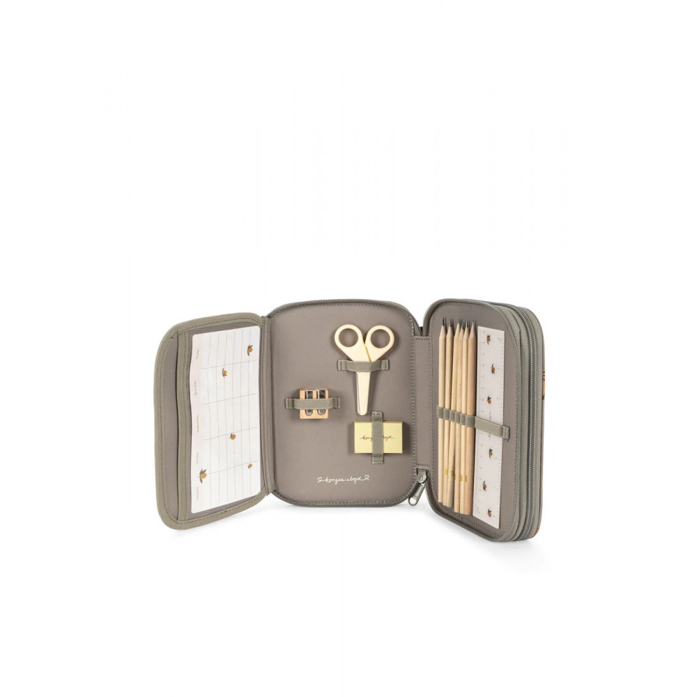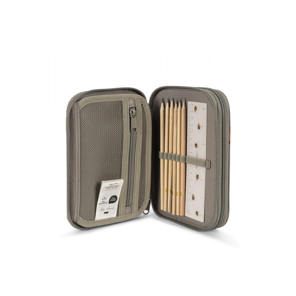 Зробіть шкільний час милим та веселим з нашим пеналом Clover. Розроблений з двома окремими відділеннями, які вміщують все: від олівців до маркерів, гумок та лінійок, а також додатковою внутрішньою кишенею на блискавці для вашого шкільного розкладу чи маленьких нотаток. Покритий Bionic ECO Finish - водовідштовхувальним просоченням без фтору. Розміри: В: 32 см x Ш: 6 см x Д: 16 см