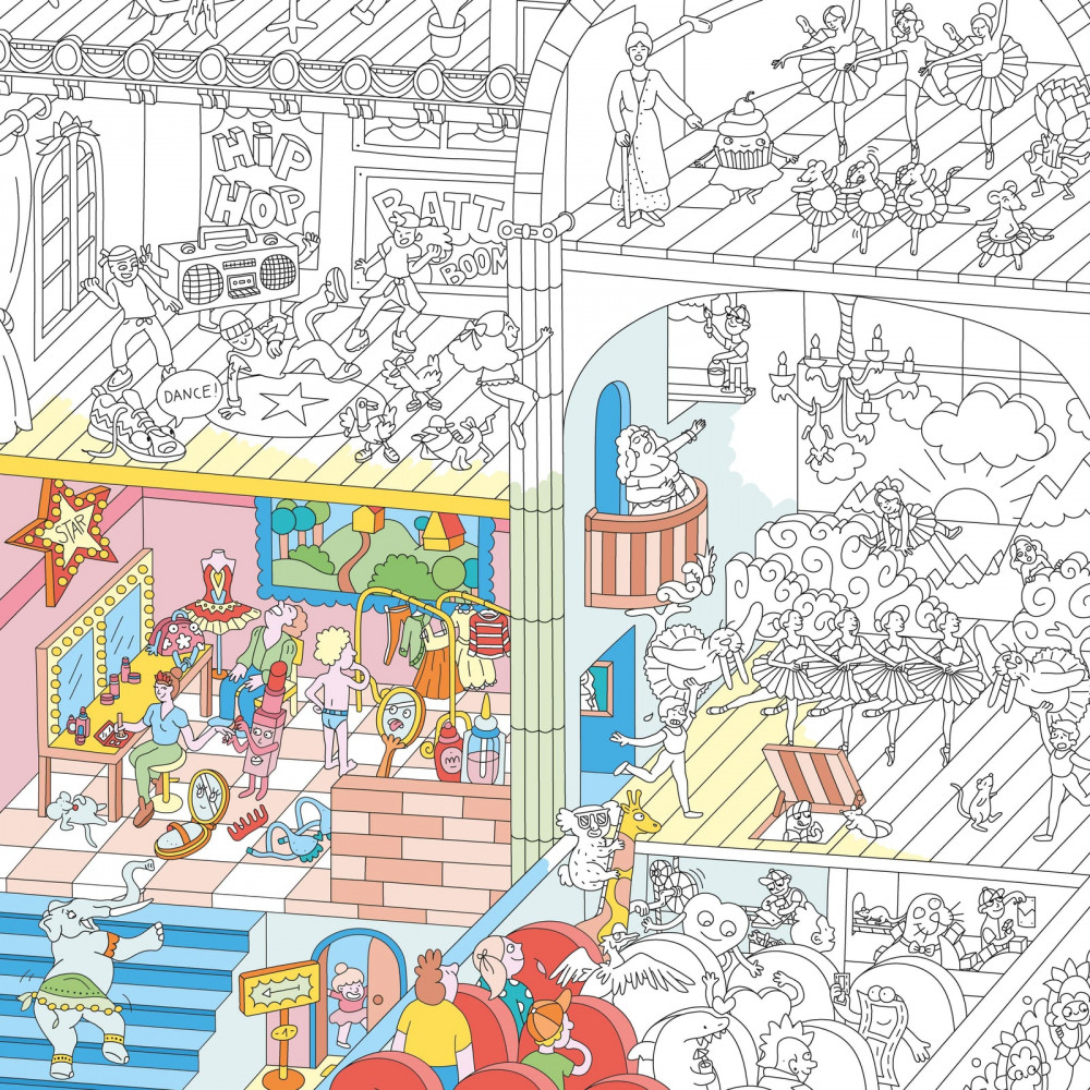 Маленькі щурики з опери! Під ритм хореографії пуанти, пачки, балерини, маленькі оперні щурики та танцюристи хіп-хопу оживляють шоу, яке можна прикрасити та розфарбувати. Безмежний художній простір для розфарбовування самостійно чи з іншими, для розкладання на підлозі, для вішання на стіну або використання як скатертина. Вміст: 1 постер Розгорнутий формат: 70 x 100 см