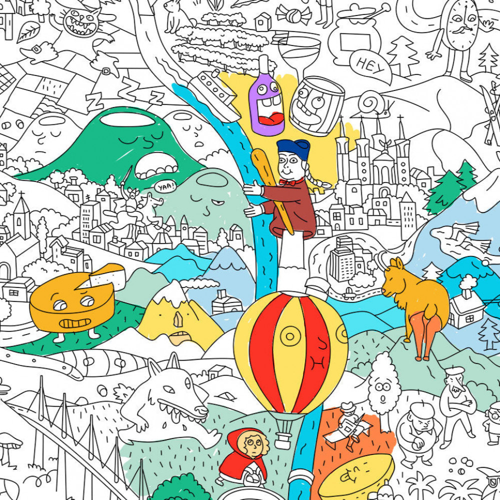 Відкриття нашої прекрасної країни, Франції, під час розфарбовування: Альпи, Бретань, Корсика, Лазурний берег, Країна Басків, DOM-TOM... Справжня подорож, повна сюрпризів та цікавих деталей! Лінія, сповнена гумору та безлічі деталей, справжня графічна подорож, якою можна поділитися між усіма поколіннями. Безмежний художній простір для розфарбовування самостійно чи з іншими, для розгортання на землі, для вішання на стіну або використання як скатертина. Вміст: 1 плакат Розкладений формат: 70 x 100 см Склад: високоякісний екстра-білий папір 120 г Інструкція із застосування: візьміть від 2 до 3 коробок маркерів OMY, щоб завершити весь ваш плакат! Розроблено та виготовлено у Франції компанією OMY.