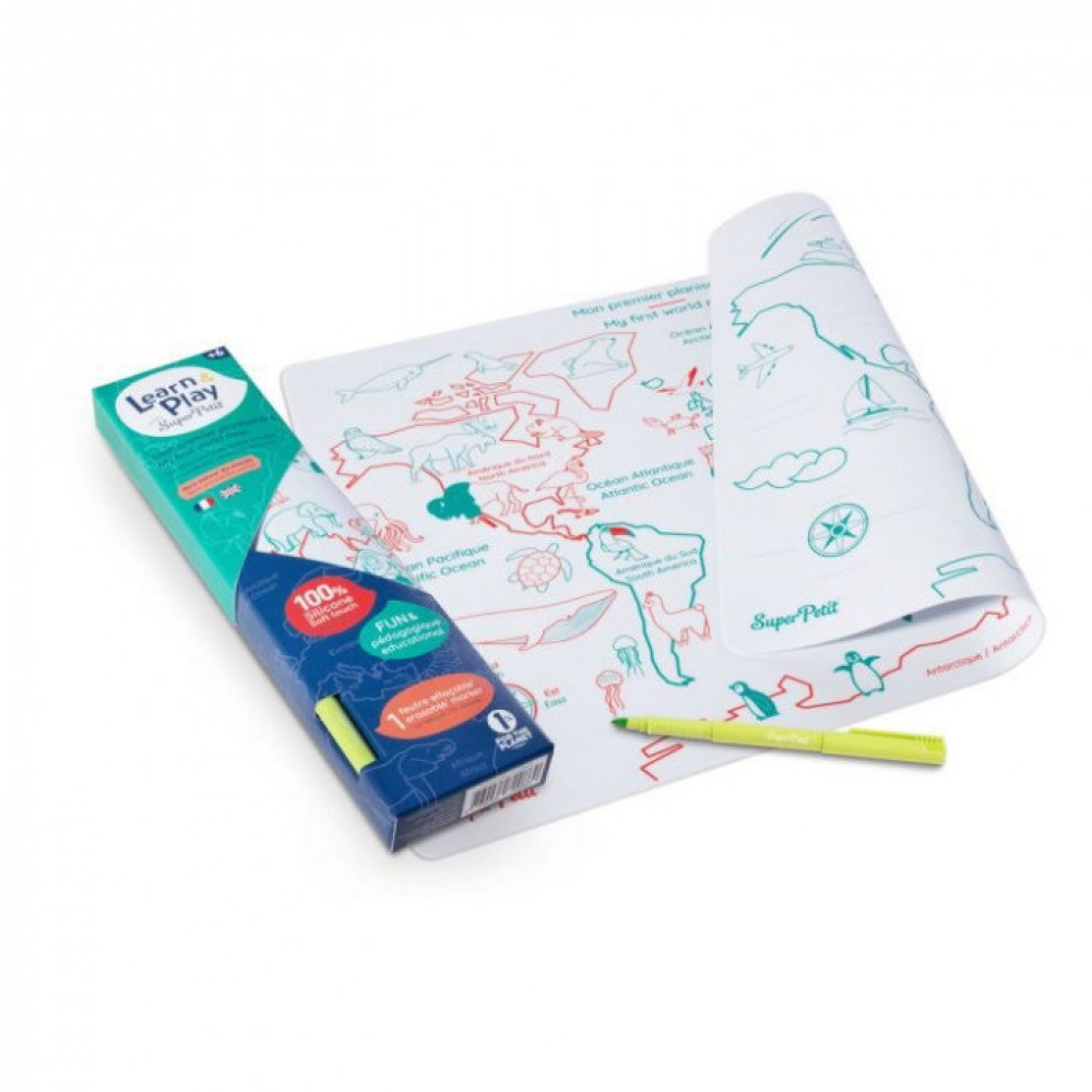Цей килимок розважить вашу дитину під час їжі. Малюнок з дінозаврами допоможе вашій дитині вивчити Їх різновиди, та дізнатіся цікаві факти з їхнього життя. Цей килимок можна використовувати для захисту столу під час творчих занять, таких як малювання, ліплення з глини, приготування їжі... 1 килимок і 1 маркер (стирається на силіконі). Виготовлений з використанням нетоксичних рослинних барвників. Непористий і антибактеріальний. Без фталатів, без BPA. Довжина: 40 см, ширина: 30 см