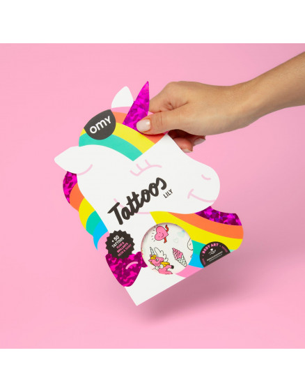Пориньте у чарівний світ єдинорога Лілі, улюбленого талісмана OMY, якого обожнюють діти! Цей аркуш із 50 неонових та золотих тимчасових татуювань сповнений чарівних єдинорогів, блискучих веселок, зірок, сердечок та багатьох інших чарівних сюрпризів, які можна приклеїти до шкіри. ✨ Ці татуювання легко наносити та пройшли дерматологічні випробування, безпечні для носіння та додають нотку магії будь-коли та будь-де! Ідеальна ідея для подарунка на день народження, для святкового подарунка або просто для того, щоб зробити день яскравішим. ВМІСТ: - 50 неонових та блискучих татуювань ФОРМАТ: 20,5 x 16 см / 8,1 x 6,3 дюйма