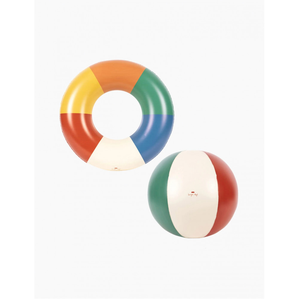 Ідеальний комплект для пляжного дня з надувним пляжним м'ячем та плавальним кругом — найкращі аксесуари для сонячних пригод. Виготовлено з міцного, легкого ПВХ, який легко надувати та здувати, тому ви можете брати ці необхідні речі для води з собою для всіх ваших пляжних або басейнових пригод. Безліч розваг для дітей будь-якого віку. Підходить від 3 років.