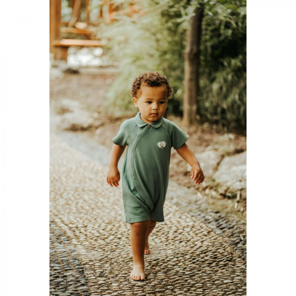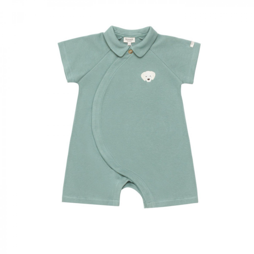 М'який бавовняний ромпер з вишивкою попереду та застибкою на кнопки для зручного одягання.